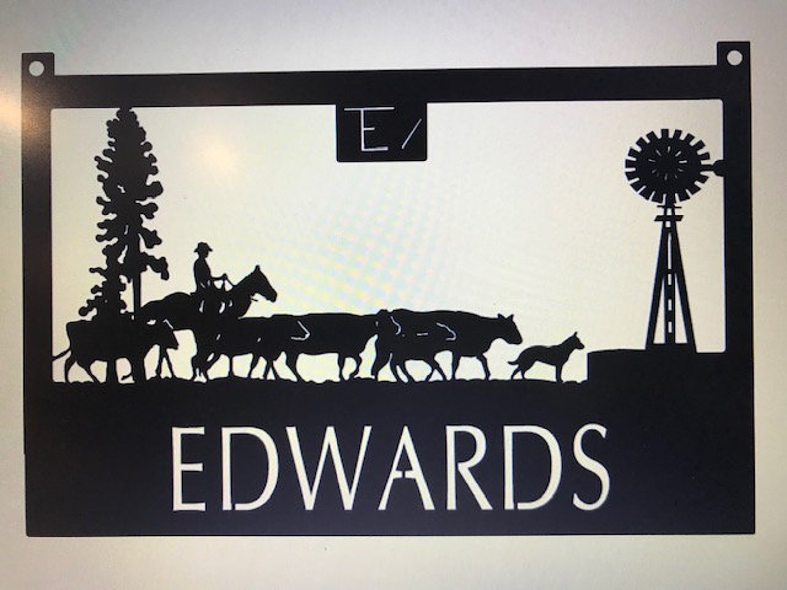 Be the first to review “Cattle Cowboy Sign – Metal Horse Scene, 3ft, Your Name”