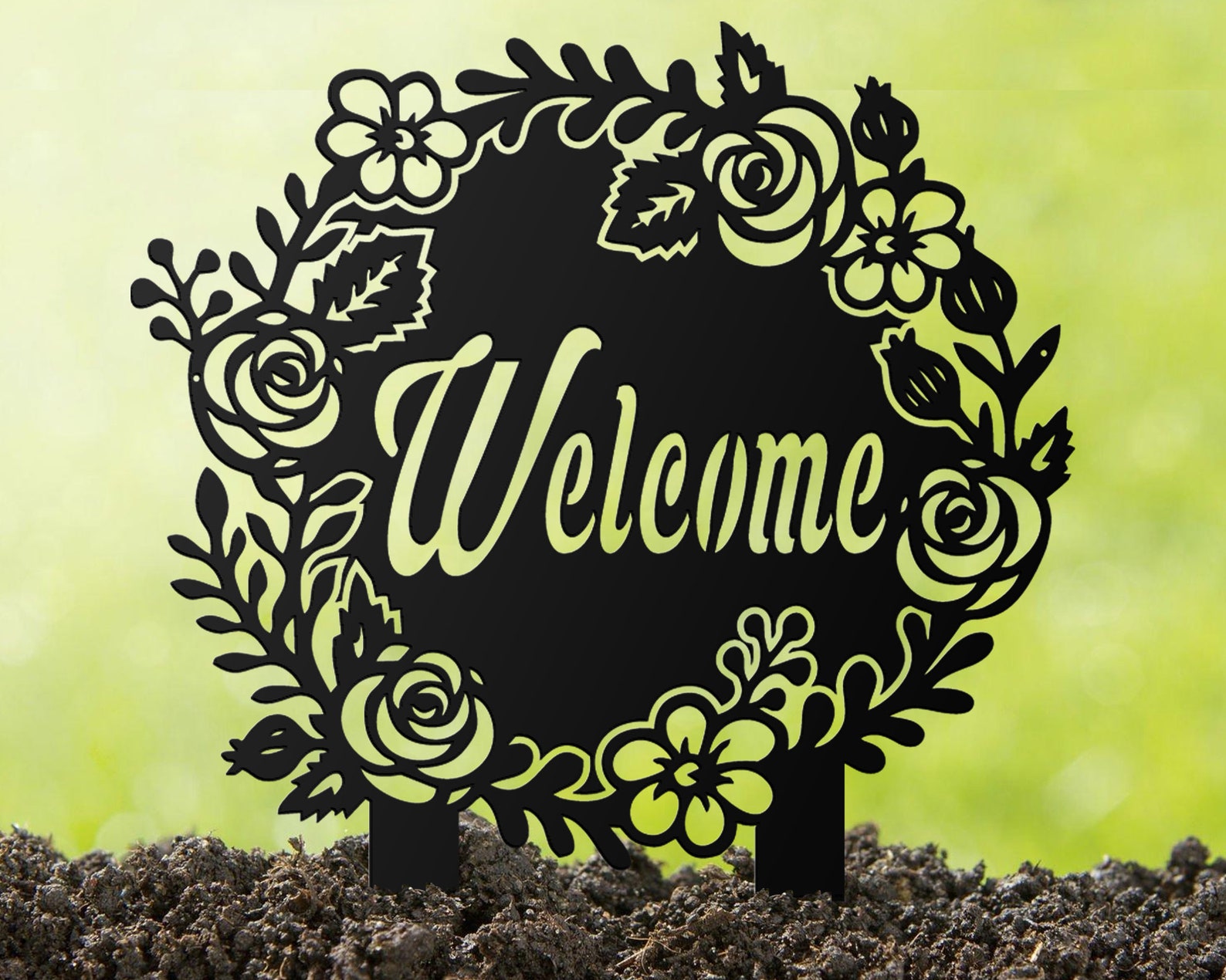 NOTE the stakes are INCLUDED in the size of the sign, meaning the actual design will be smaller than the size you are ordering.Cut from premium 18 gauge steel, powder coated for rust protection in your choice of red, black or silver.