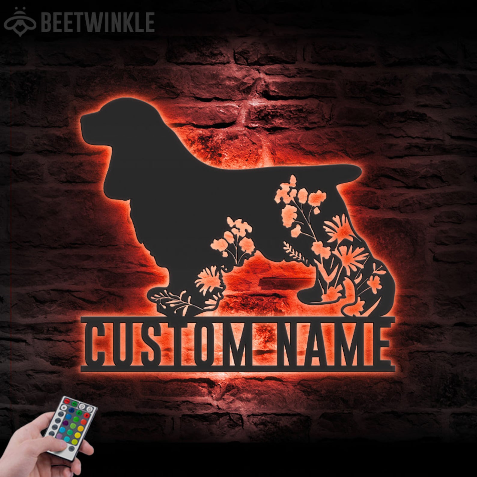 Be the first to review “Cocker Spaniel Floral LED Metal Wall Art – Custom Decor”
