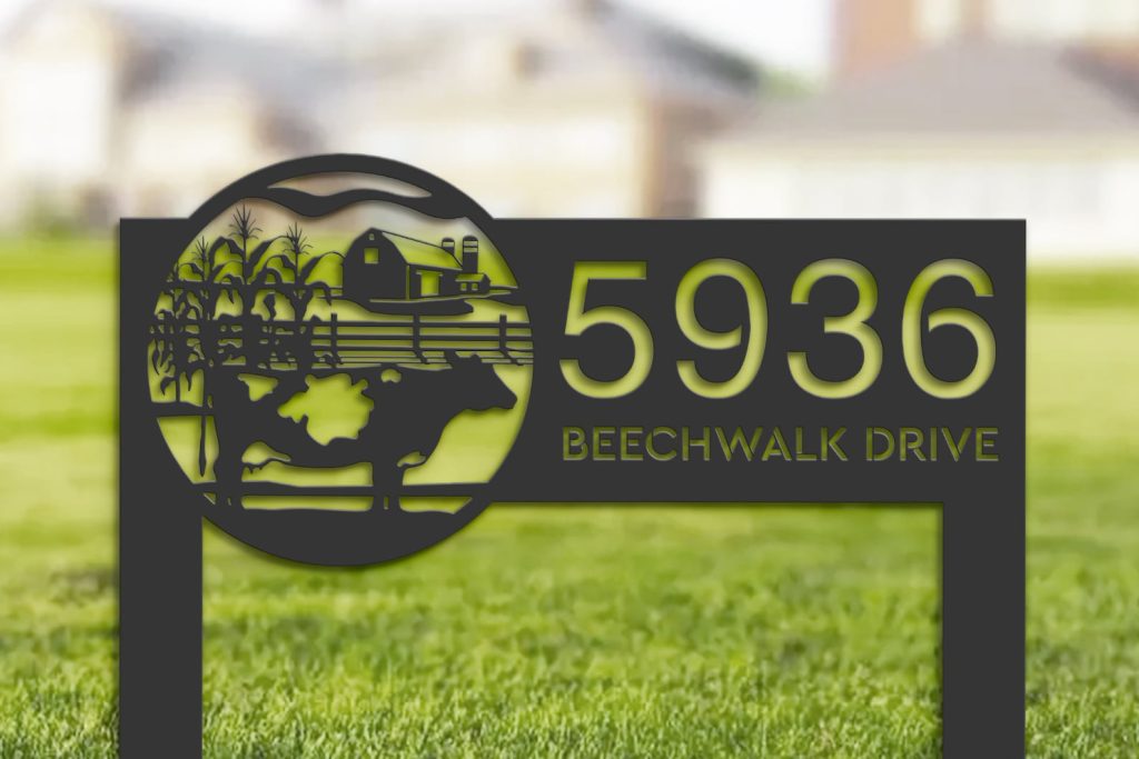 The customization process allows you to input your desired text, select a font that suits your style, and choose a design that embodies your vision. Each sign is treated with a rust-resistant powder coating, making it resilient against various weather conditions while retaining its visual appeal.