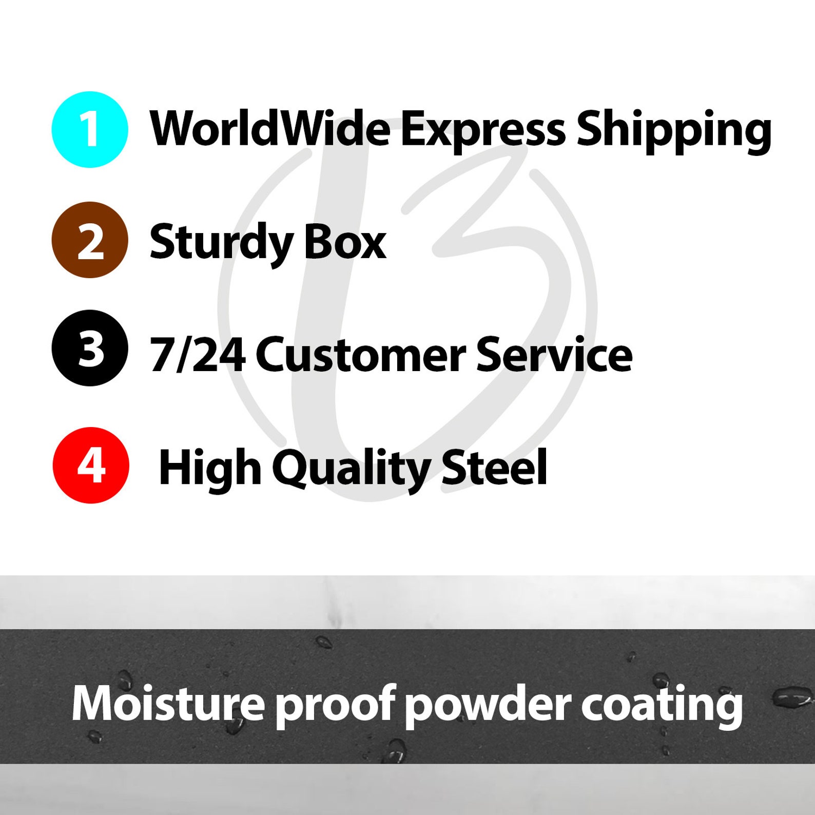 Specs: We use high quality 16 Gauge Steel. We use electrostatic powder coat finish to make it weatherproof. We offer Black, Gold, Silver, White options, for other colors please get in touch with us. Only nails and screws can get rustier if exposed much rain or snow.