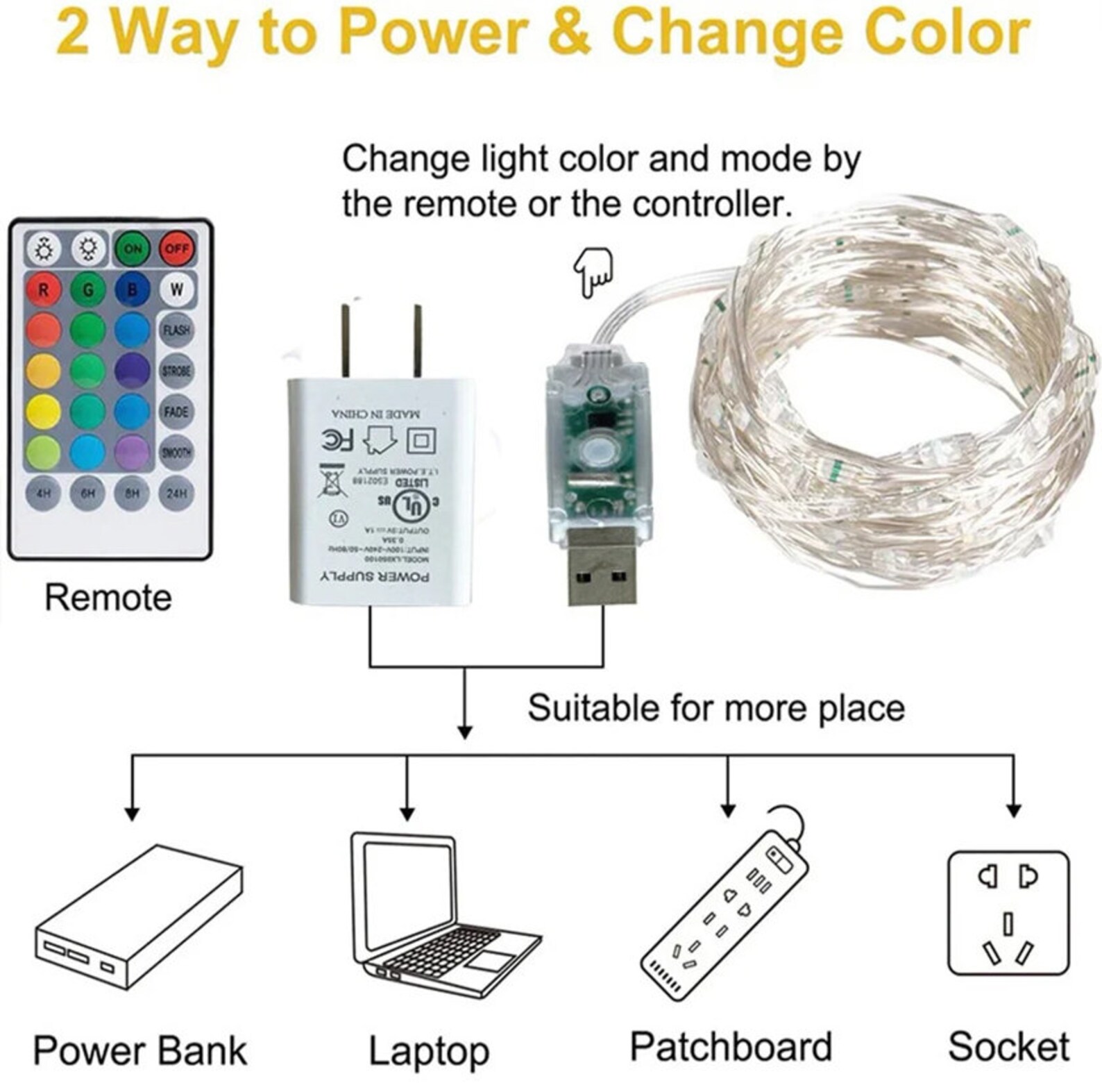 The USB plug enables you to plug this string of LED lights into the USB hub and power adapter. You can go to the store to buy a CR2025 button battery.