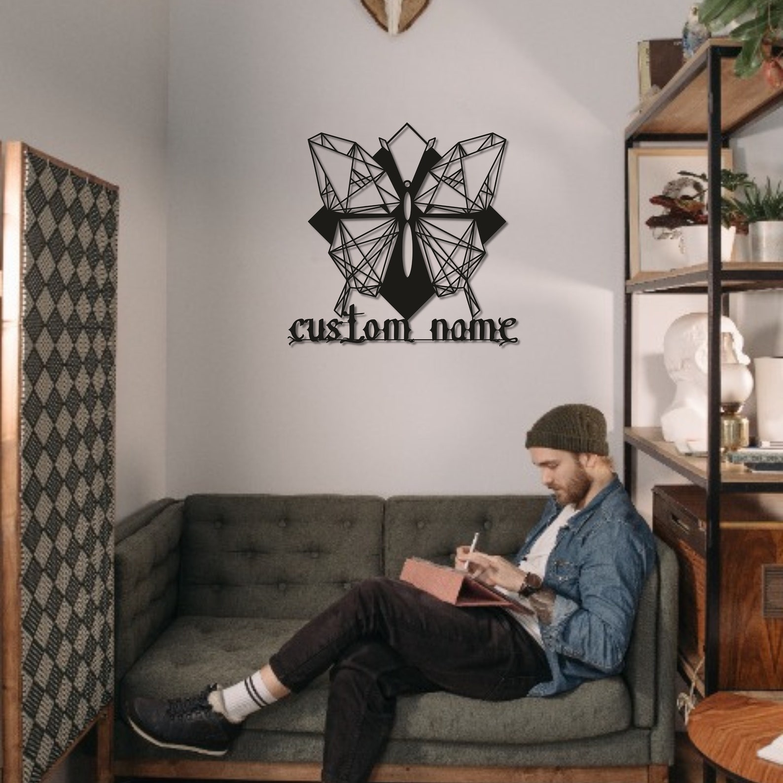 Custom Butterfly Tattoo Metal Wall Art, Tattoo Wall Art, Tattoo Studio Decor, Personalized Monogram Sign, Tattoo Studio Sign, Office Decor