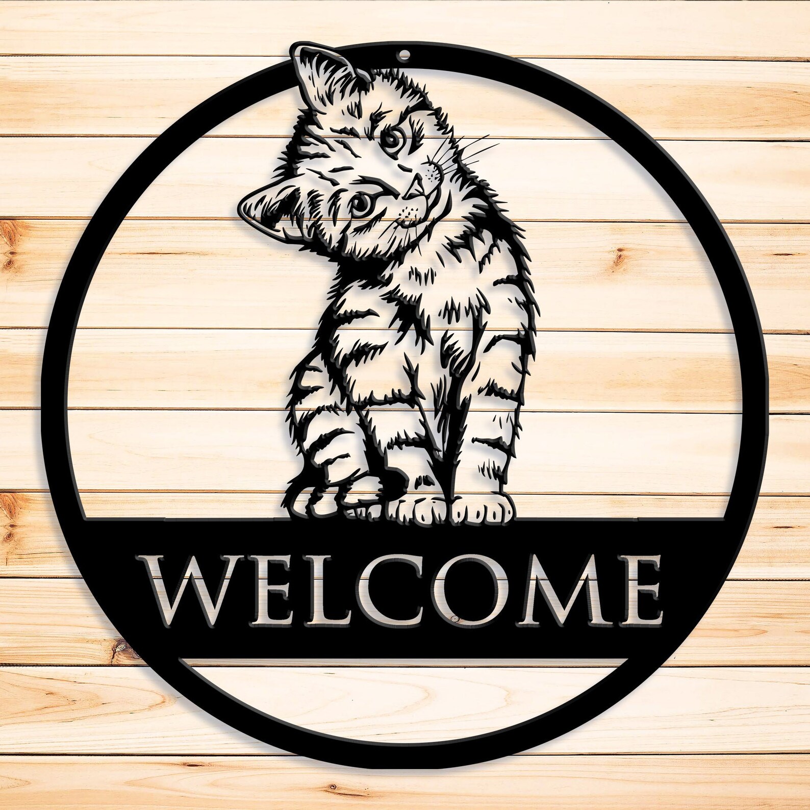 Custom Cat Metal Sign, Kitten Welcome Sign, Personalized Metal Sign