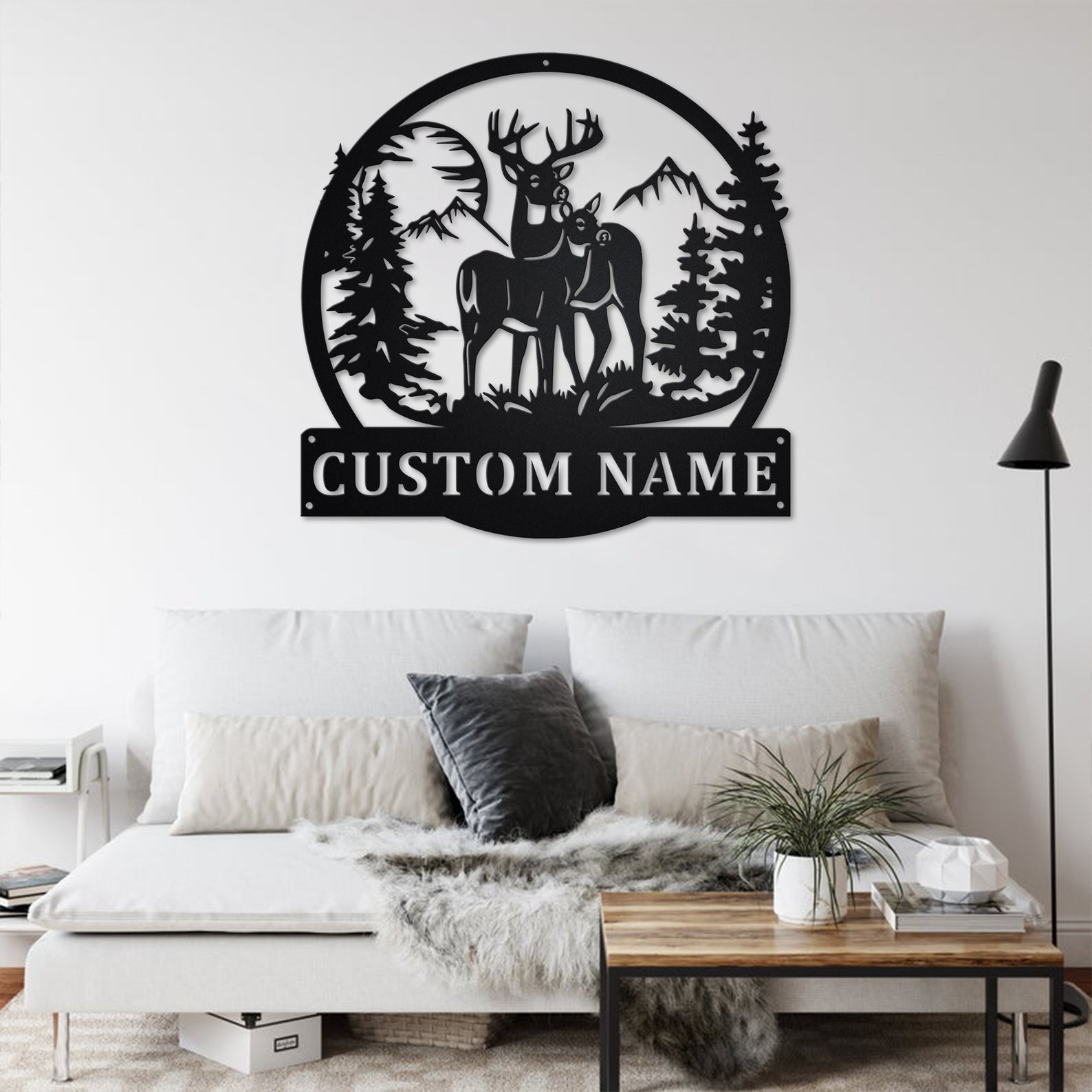 Custom Deer & Mountain Metal Sign with LED – Hunter Decor