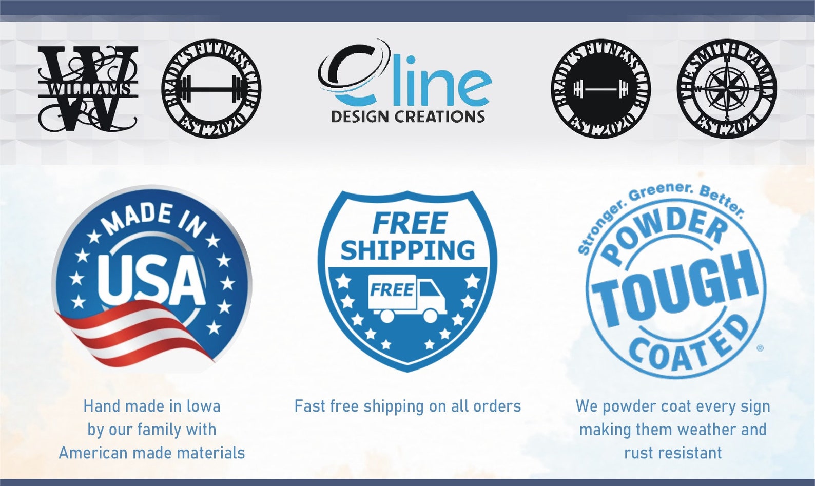 Cline Design Creations metal products are each custom made in our shop by our family. Each sign is designed to perfectly fit your home and they also make great gifts!