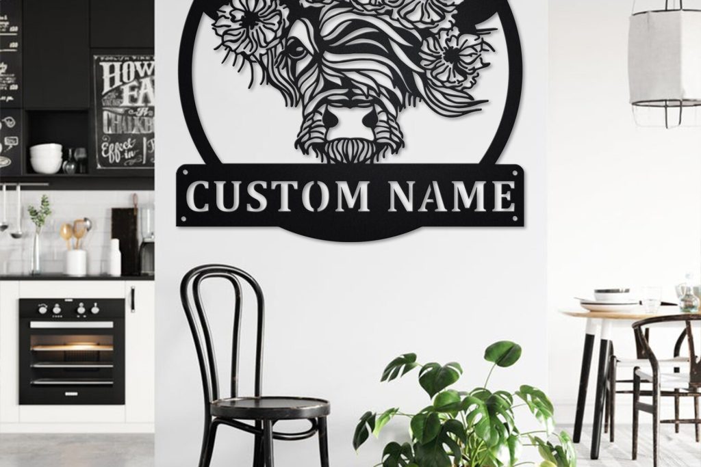 Custom Longhorn Cow Metal Sign – Personalized Farmhouse Decor