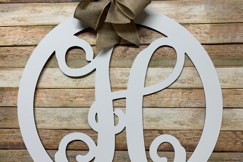 Welcome your guests with this initial door wreath. Our initials are thicker than our competitors so they POP on your front door or patio! You can request a block initial, magnolia font, or our vine script font. We offer a variety of colors and hanging options. Our Monogram Porch Sign makes a great gift when you don9;t know what to gift!