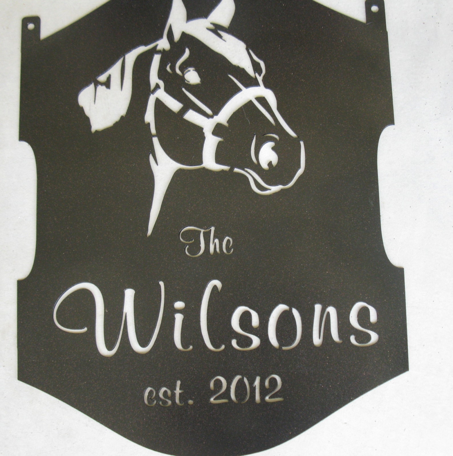 Metal laser cut sign personalized with your name finished in gorgeous, black or bronze ,or copper acid ,Measures 24"". You can also add Est. date or first names etc. Makes a very special gift!