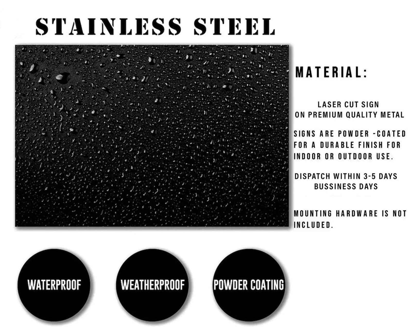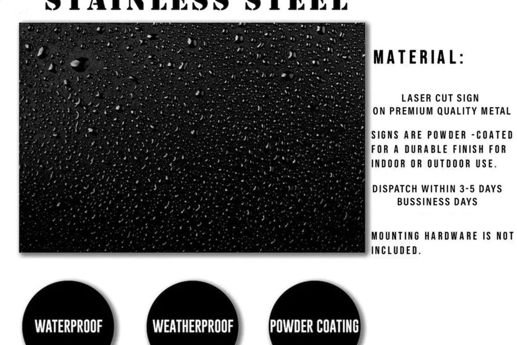 Our metal signs are cut from PREMIUM QUALITY MATERIALS. These METAL is roughly the same thickness of a quarter. Each piece is cut to order and is powder coated front and back to result in a perfectly smooth rust free sign. This sign can be hung indoors or outdoors offering a variety of uses.