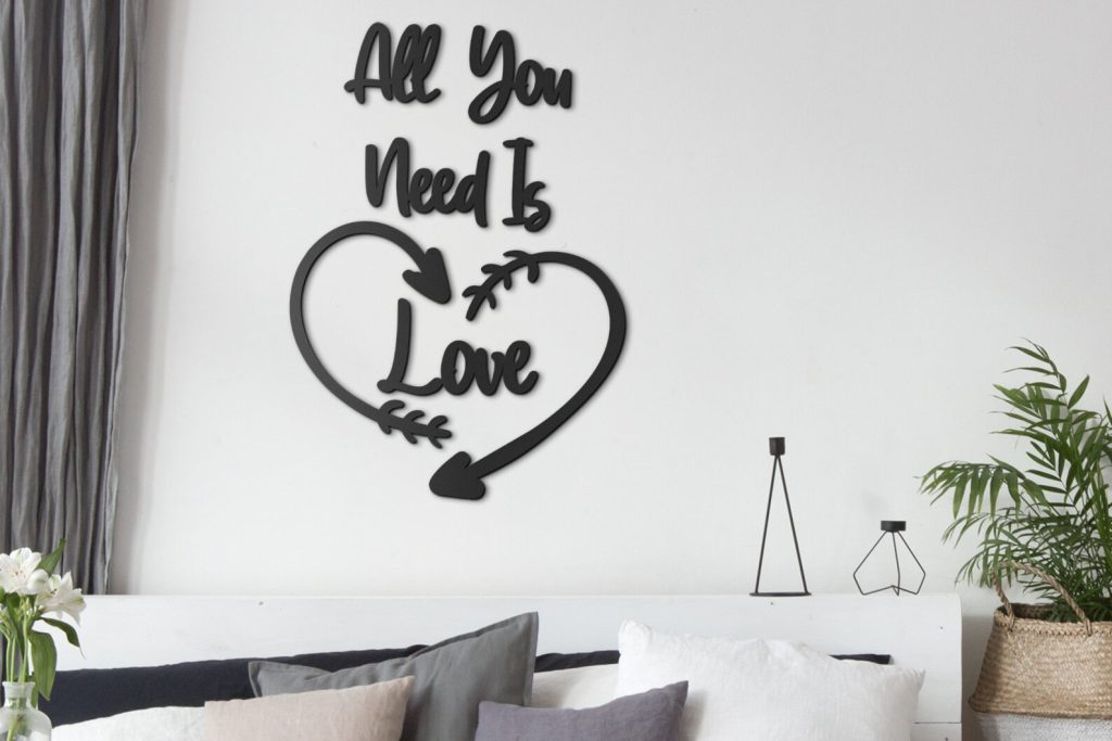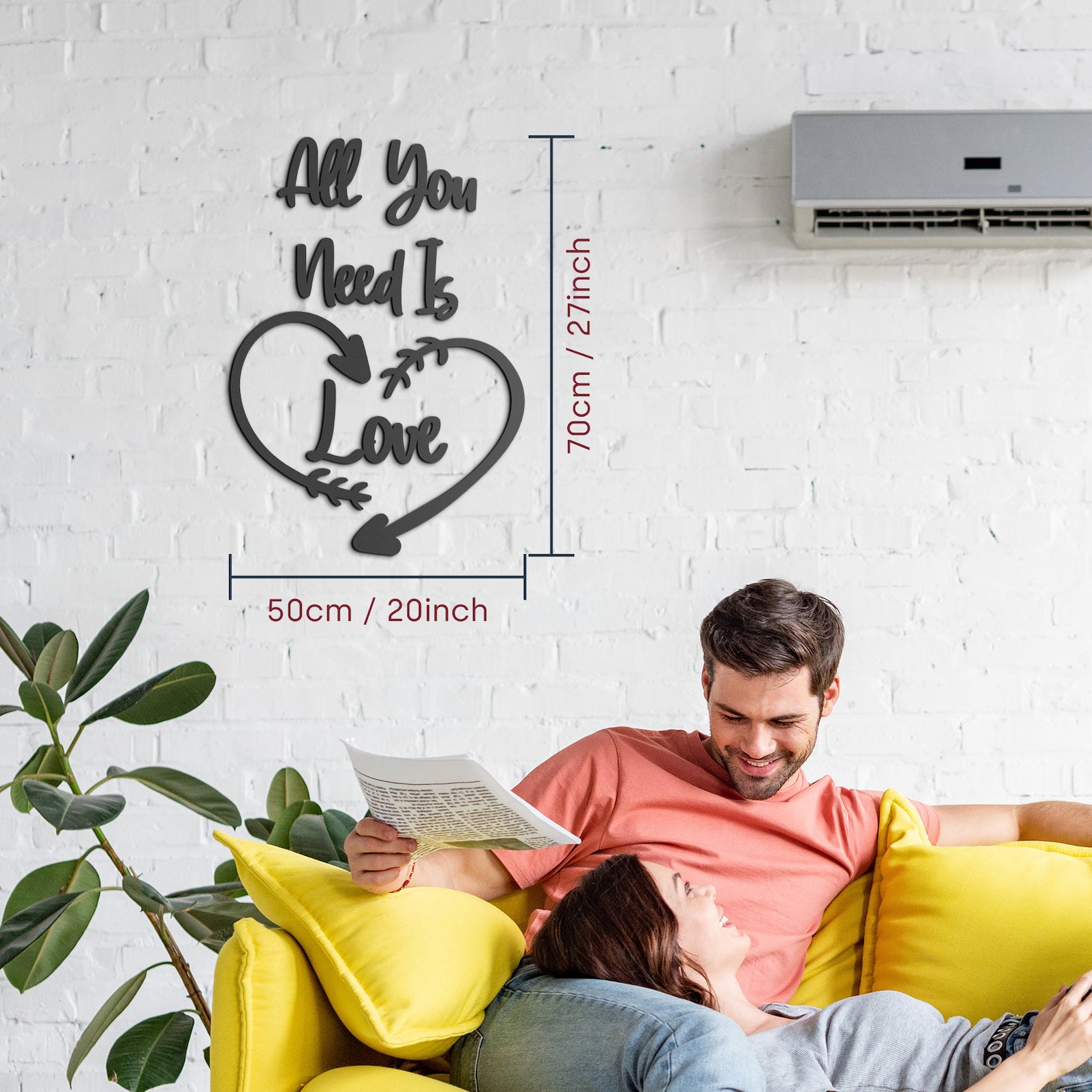 All You Need Is Love Metal Wall Art, Living Room Decor, Above Bed Decor, Unique Design Metal Wall Sign, Metal Words