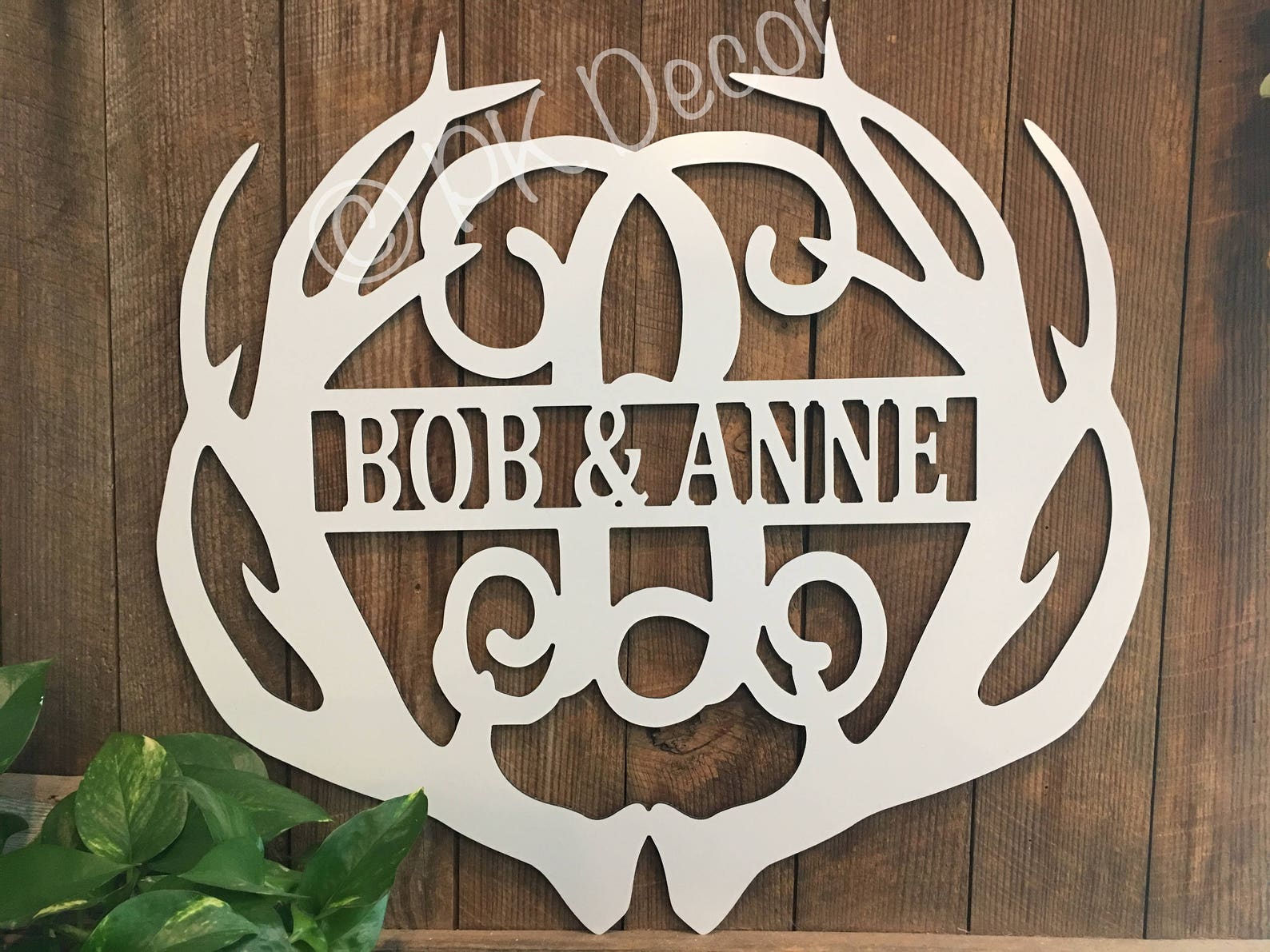 Surprise your favorite deer hunter or collector with this personalized antler decor. Our metal acm replaces those tattered fabric garden flags and will not rust or fade! Gift one to your favorite hunter for a memorable gift. Comes in a variety of colors! Two chains ready to hang are incl or in customization request holes/no holes. This was be great as an addition to your favorite wreath or on the wall near your family portraits.