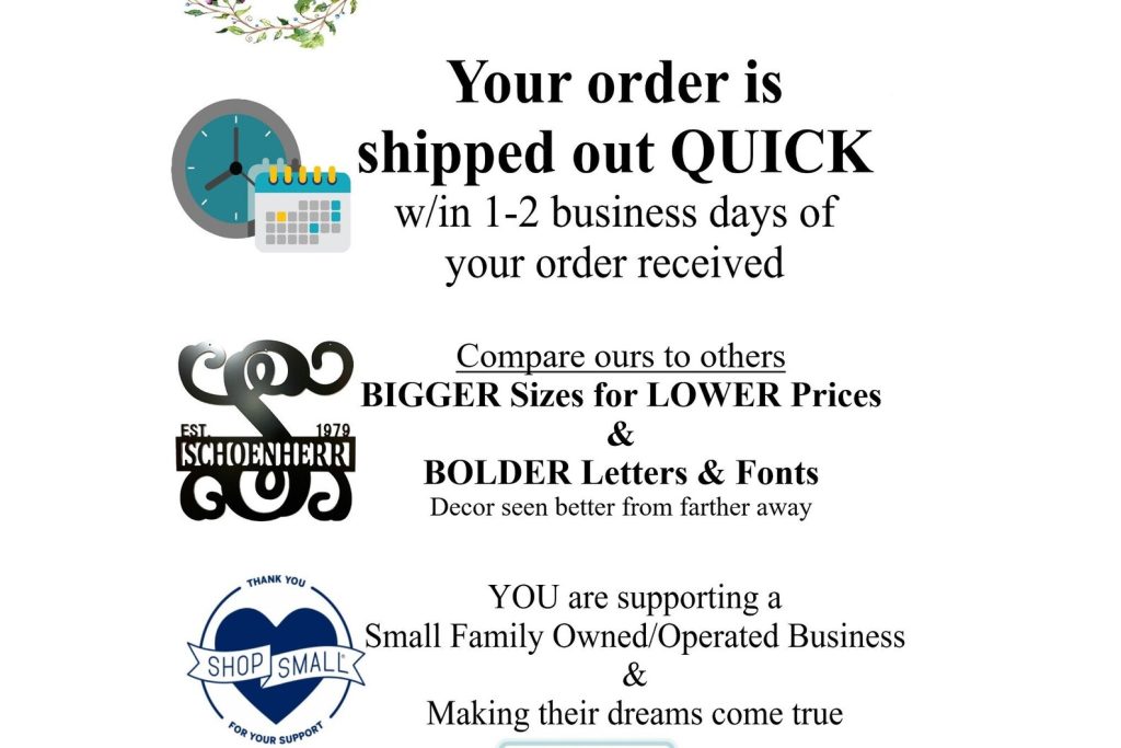 * SHIPPING: Your dcor is cut here in our home and shipped out QUICKLY! Orders ship USPS Priority. By purchasing this item you are releasing us from any delivery delays after it leaves our hands.