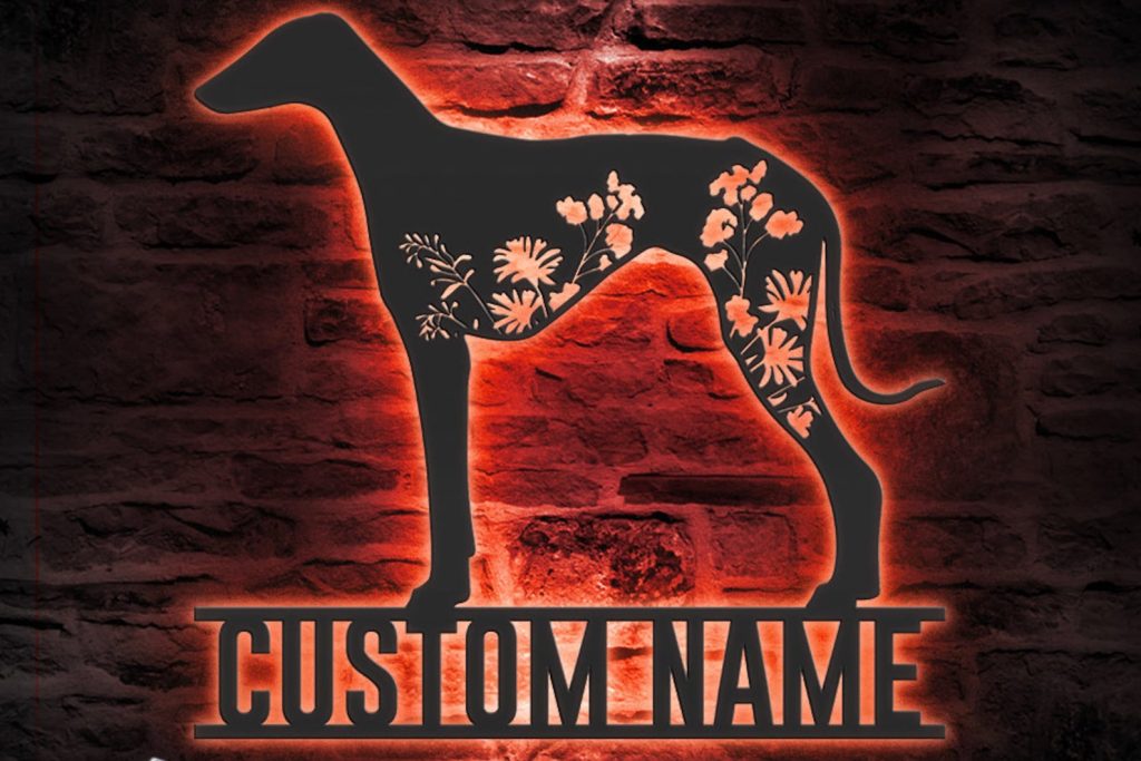 Azawakh Floral LED Metal Wall Art – Custom Decor
