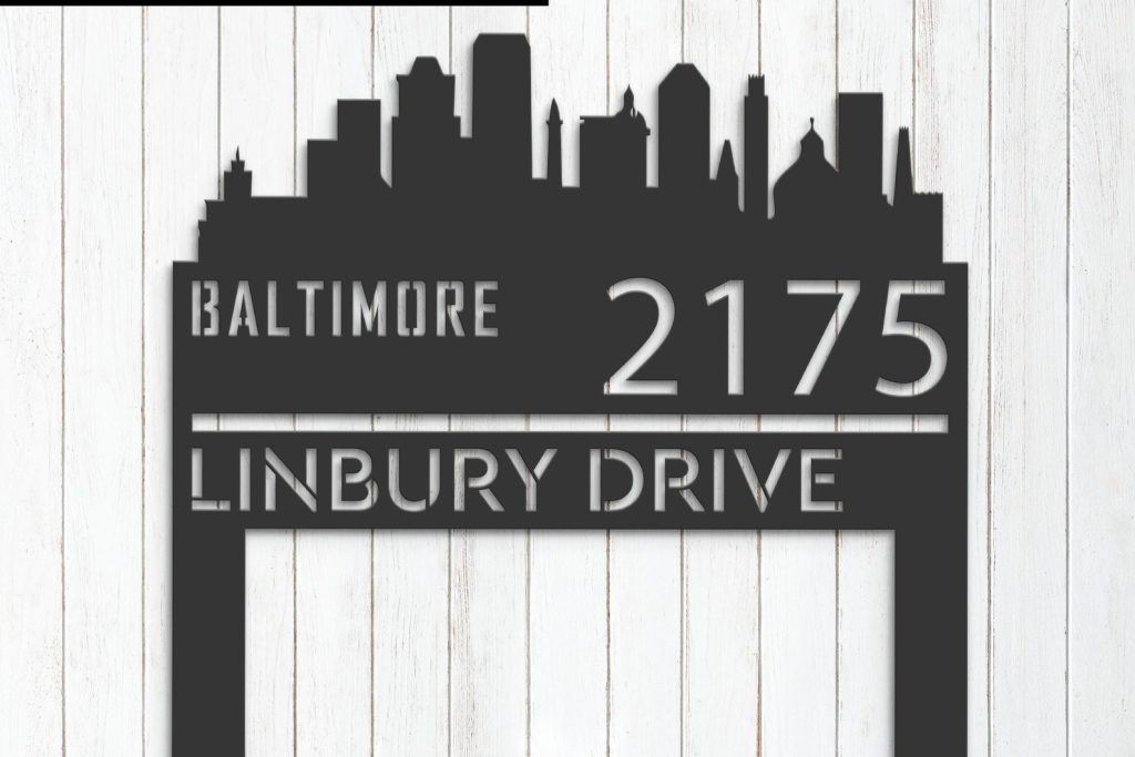 Be the first to review “Baltimore Skyline Address Sign – Personal Metal Plaque”