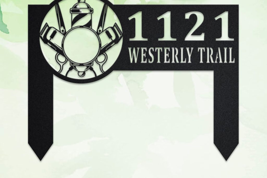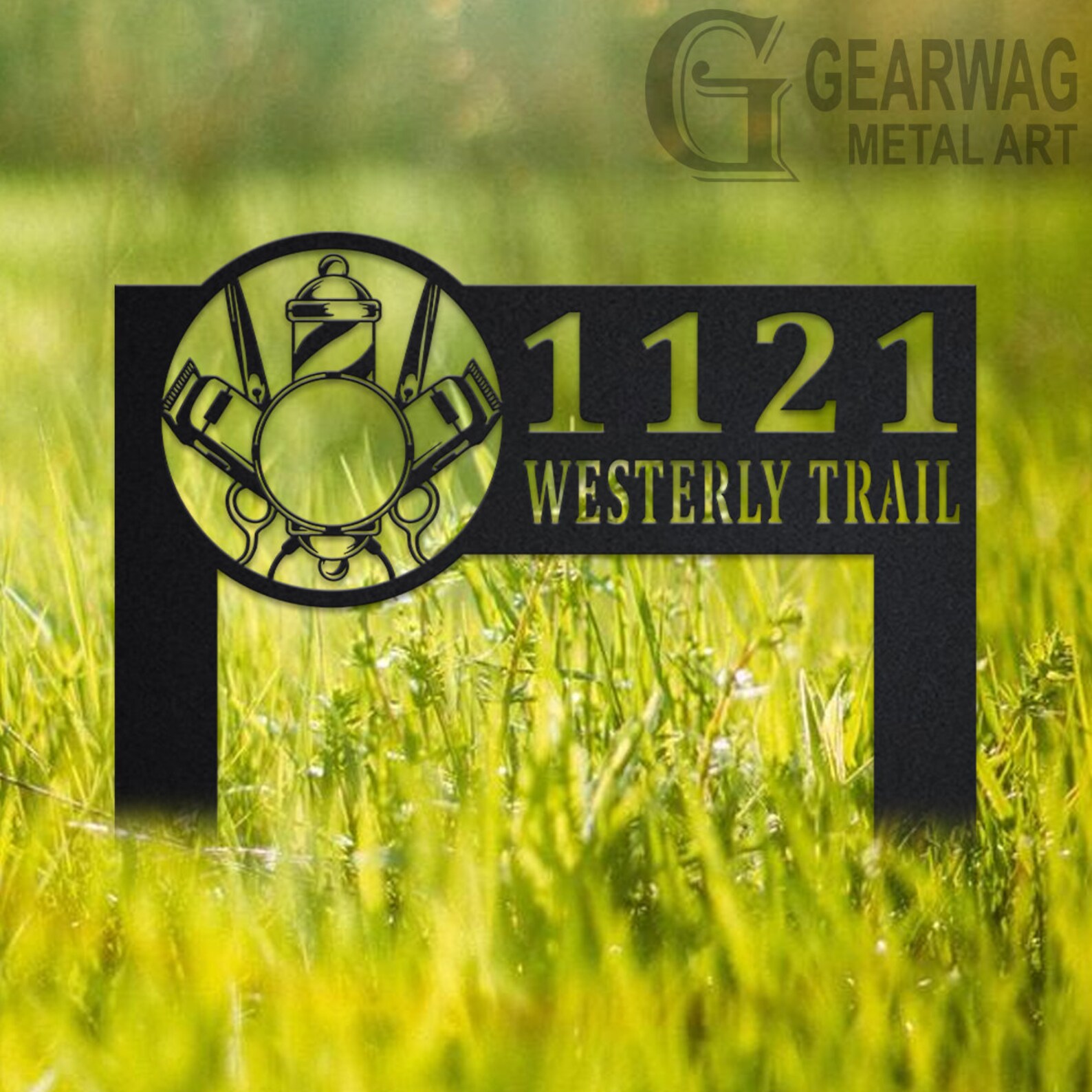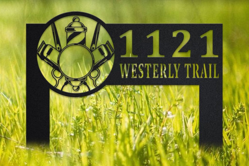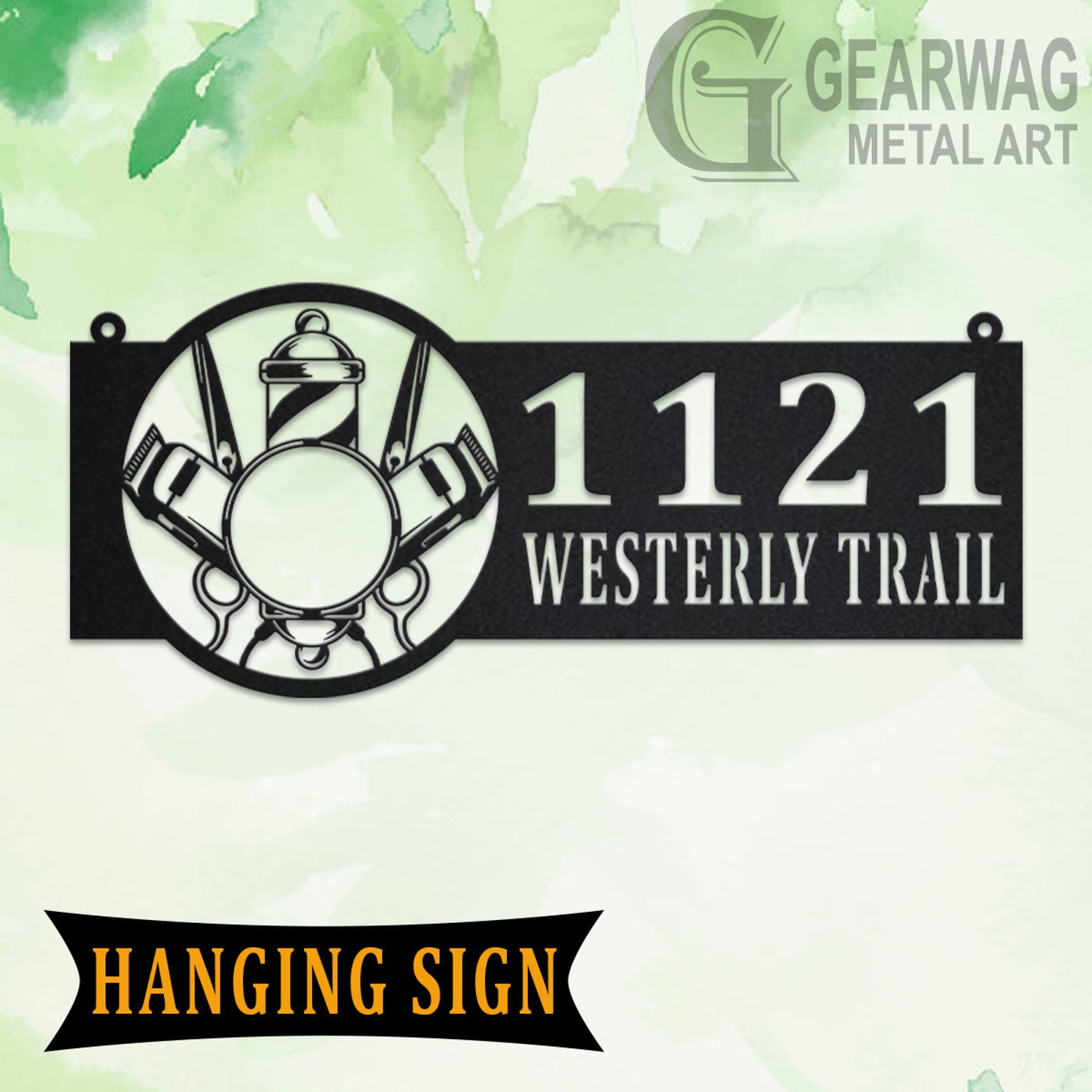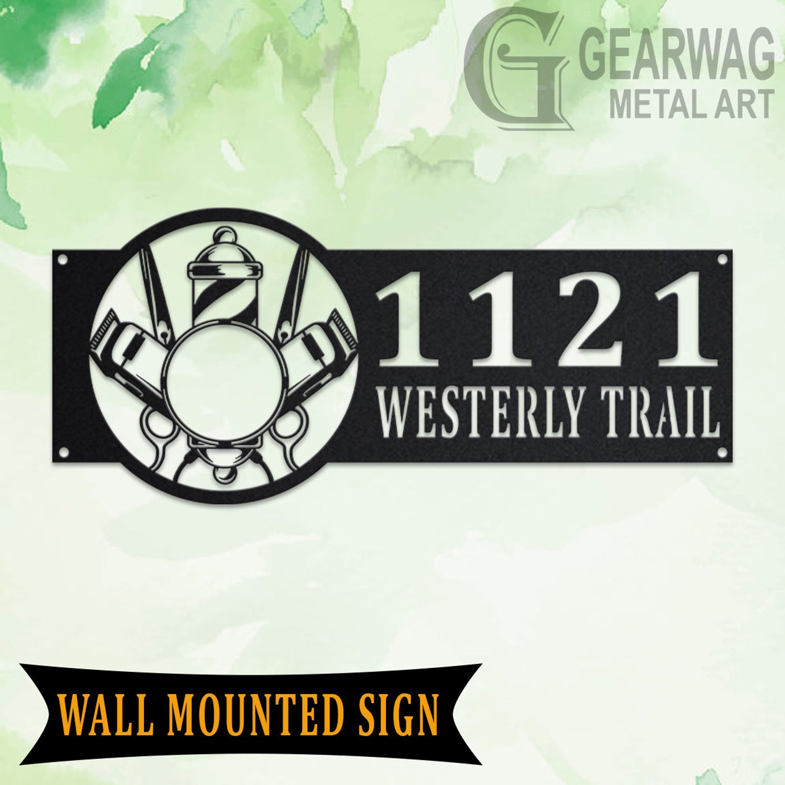 Barbershop Address Sign – Personalized Metal Shop Plaque
