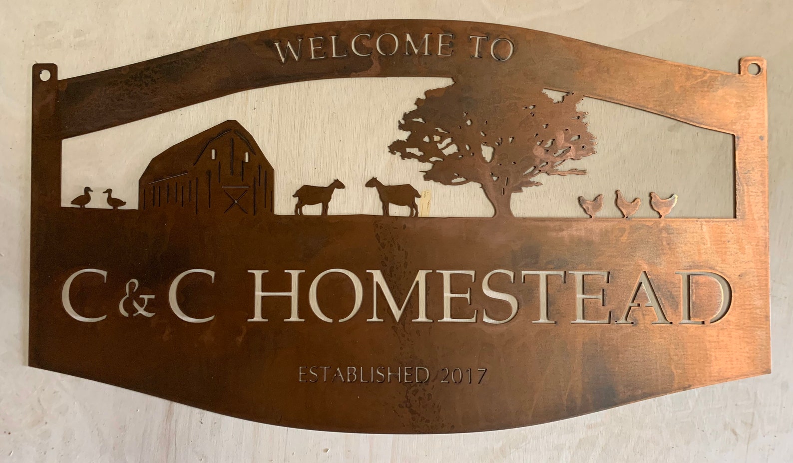 Measures 36"". Powder coated black or beautiful rustic acid finish and clear coated . Makes a very attractive entrance sign.Incl with the price is customizing with your name.Our finish is a baked on powder coat for a very long lasting durable finish.