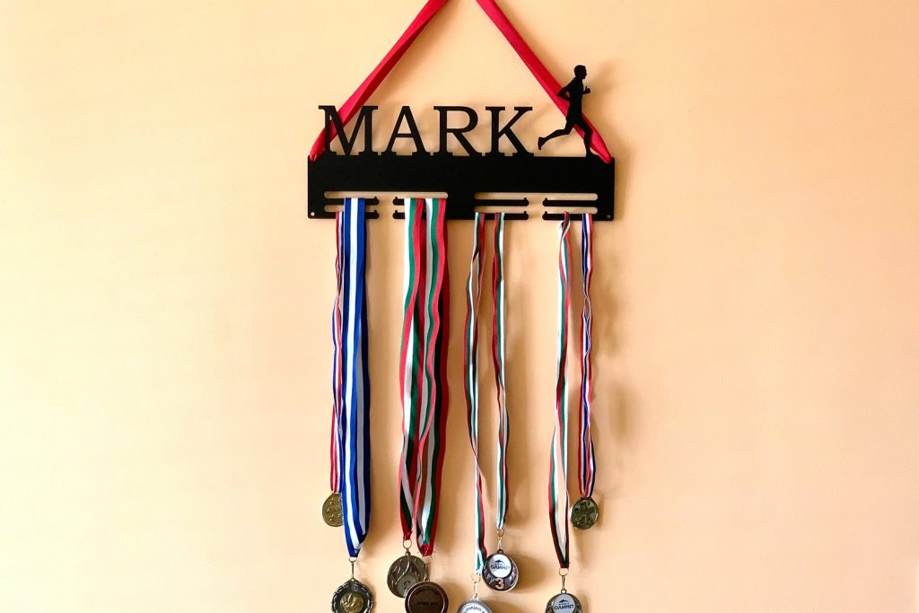 This personalized basketball medal holder with a custom name is the best way to display all that you have been collecting from the championship circuit.