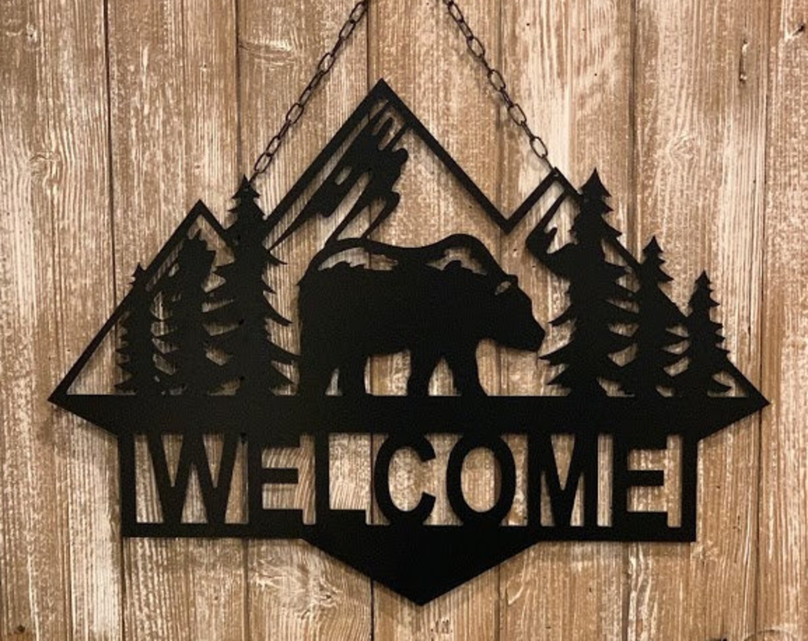 Bear Scene Sign – 18×24 Custom Metal Cabin Decor