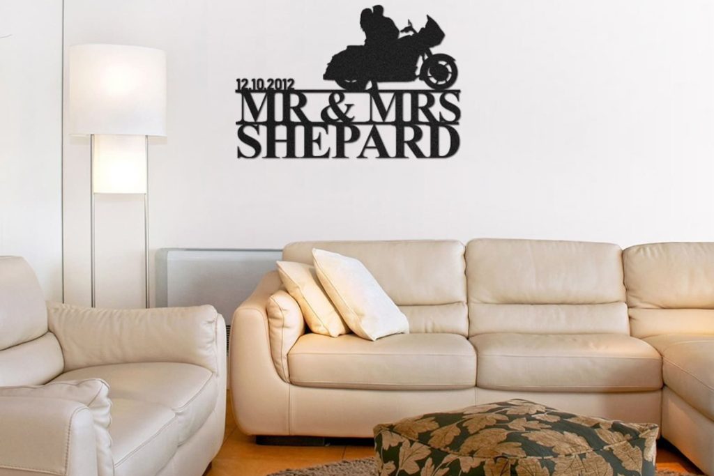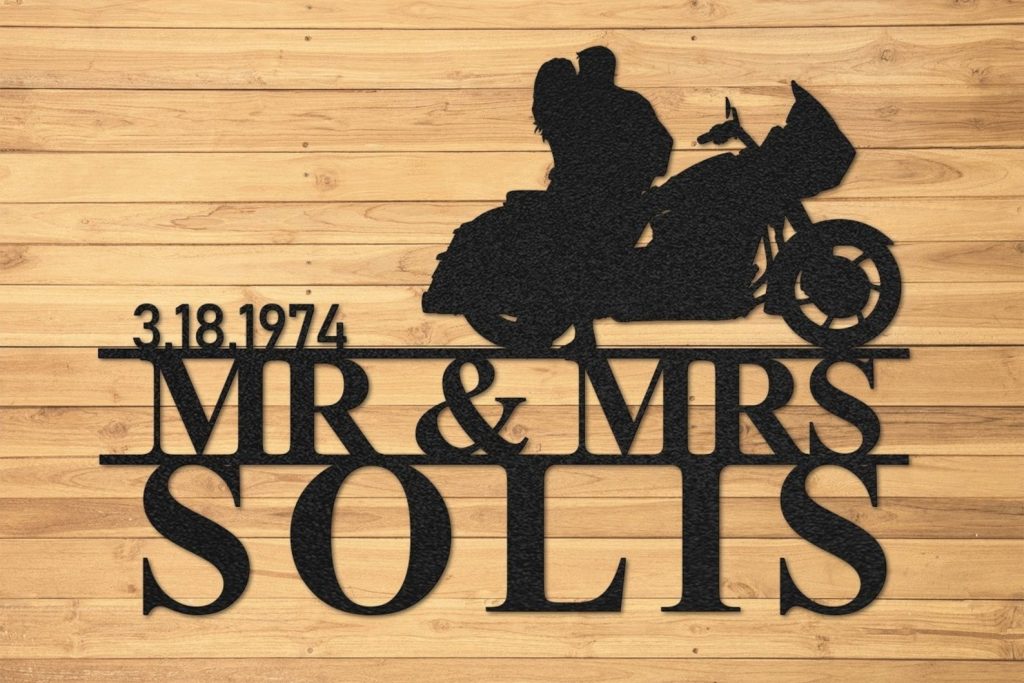 Sweet Ride9;s laser-cut Happily Married Biker Couple Personalized Wall Art brings together your most significantly meaningful bond into a design that truly speaks from the heart, bringing incredible meaning to any wall it adorns.