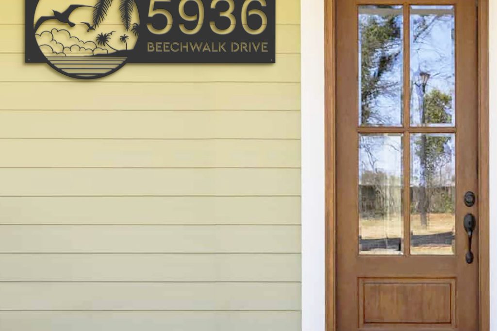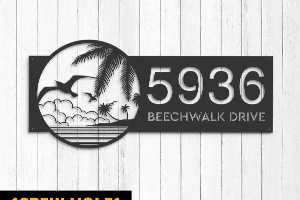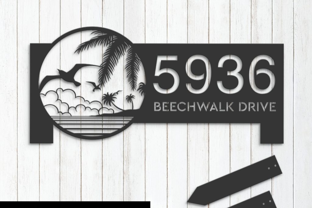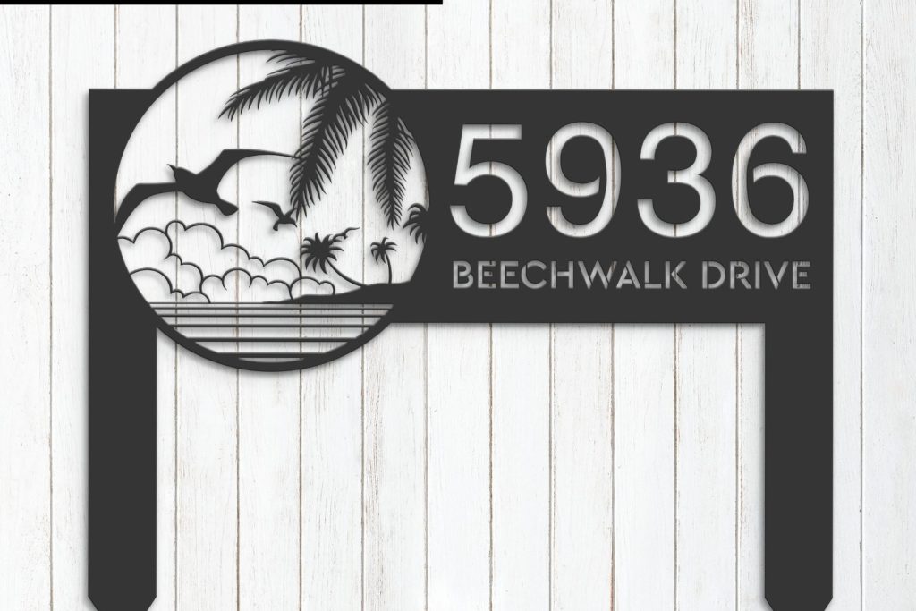 Birds Island Address Sign – Personal Metal Palm Decor
