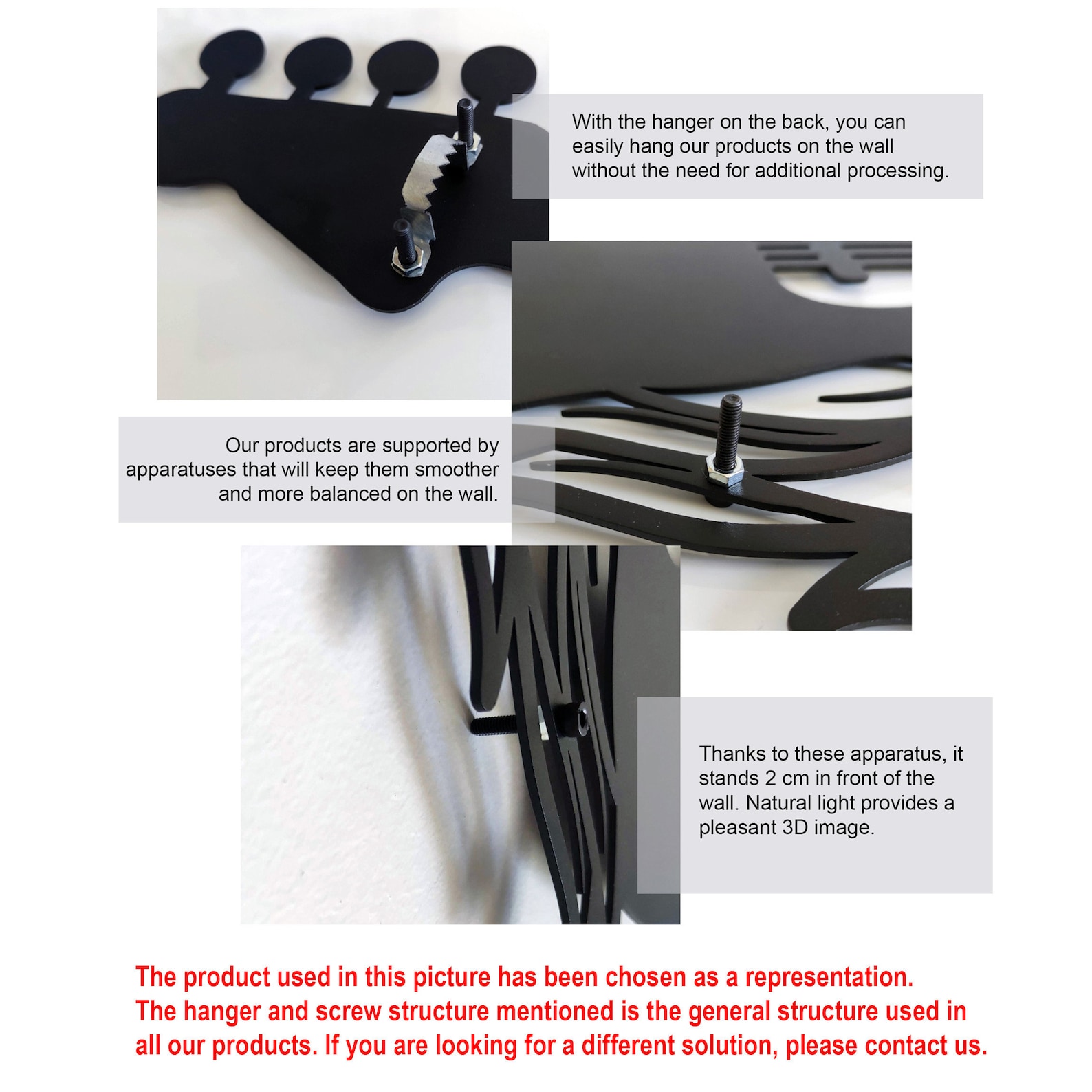 Our products are strong and light. The product, which can be easily hung, does not require an additional assembly process. You can easily hang the product with the hanger on the back of each piece of product.