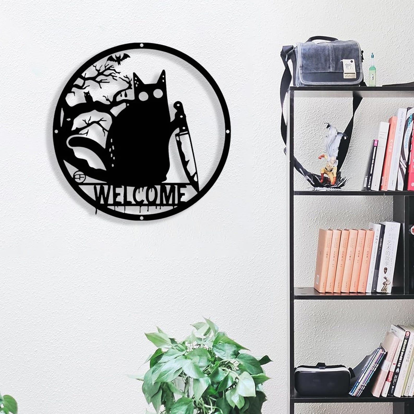***Black Cat Spooky Metal Sign | Black Cat Sign | Murderous Cat House Decor | Halloween Decor | Perfect for Halloween | 8-24 Inches***