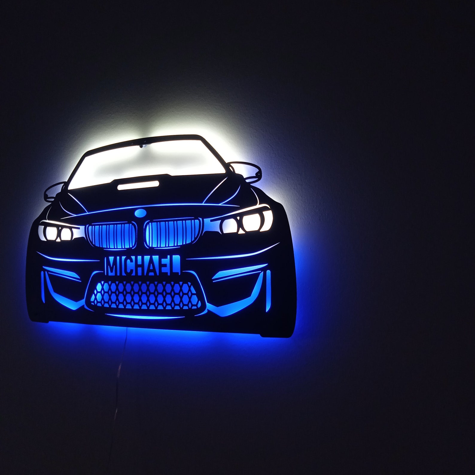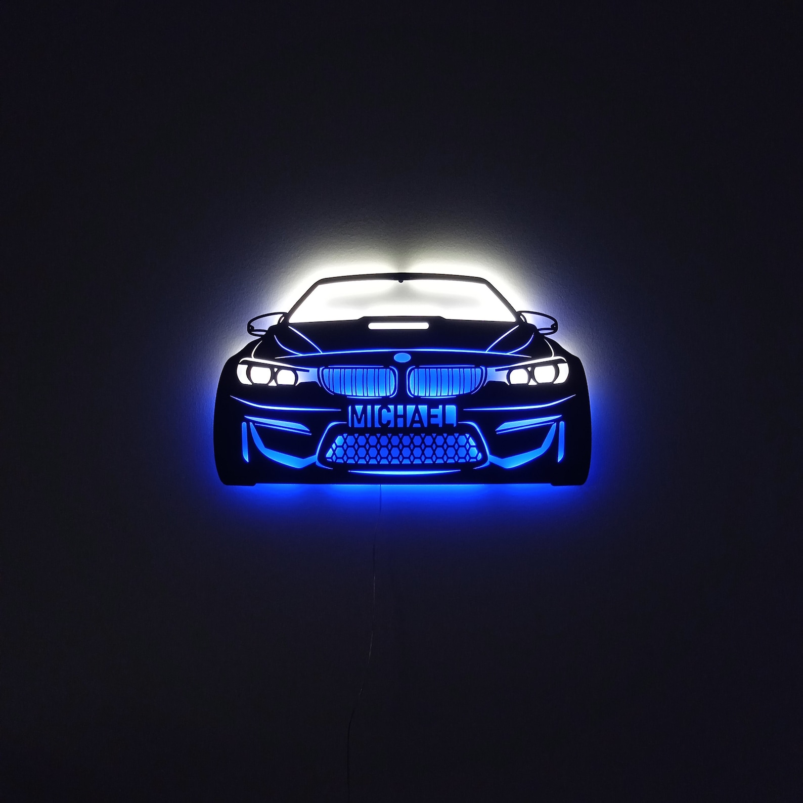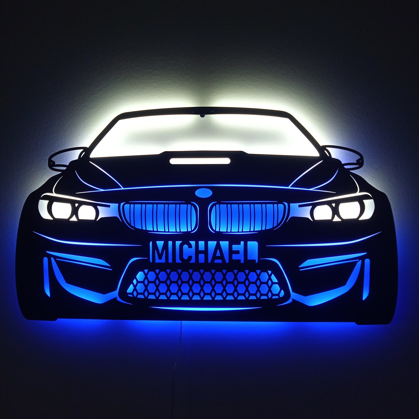 BMW M4 Silhouette, Led Lighted BMW Car Front Wiew Silhouette, Custom Metal Car Sign, F1 Motor Car Silhouette, Car Wall Art, Car Gift For Him