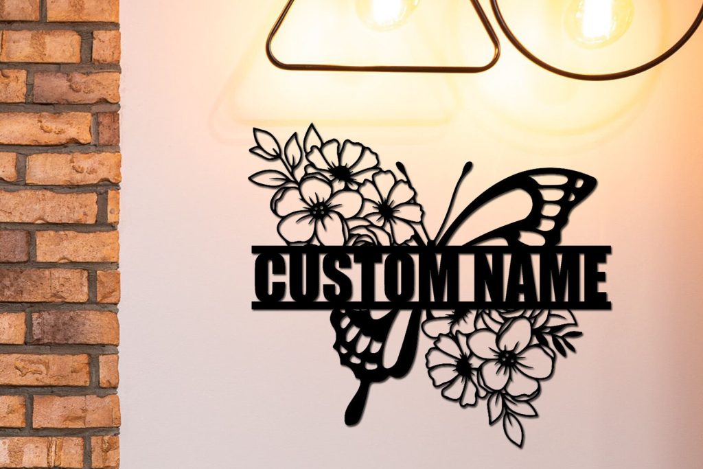Custom Butterfly Floral Metal Sign
