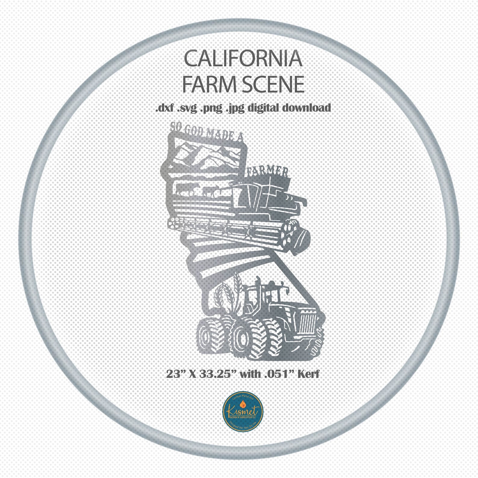 Introducing our California sign laser cutting files for cnc, a detailed god made a farmer sign for metal. This farm and combine sign svg, tractor dxf for laser cutters file bundle includes svg jpg png dwg (r14 & 2018) and dxf files (r14 & 2018) for a full collection of file formats to suit your needs. These versatile cutting files are perfect for creating custom plasma cut ranch signs on your cnc machine and feature clean lines and minimal nodes; they have been sheetcam tested for tolerances.