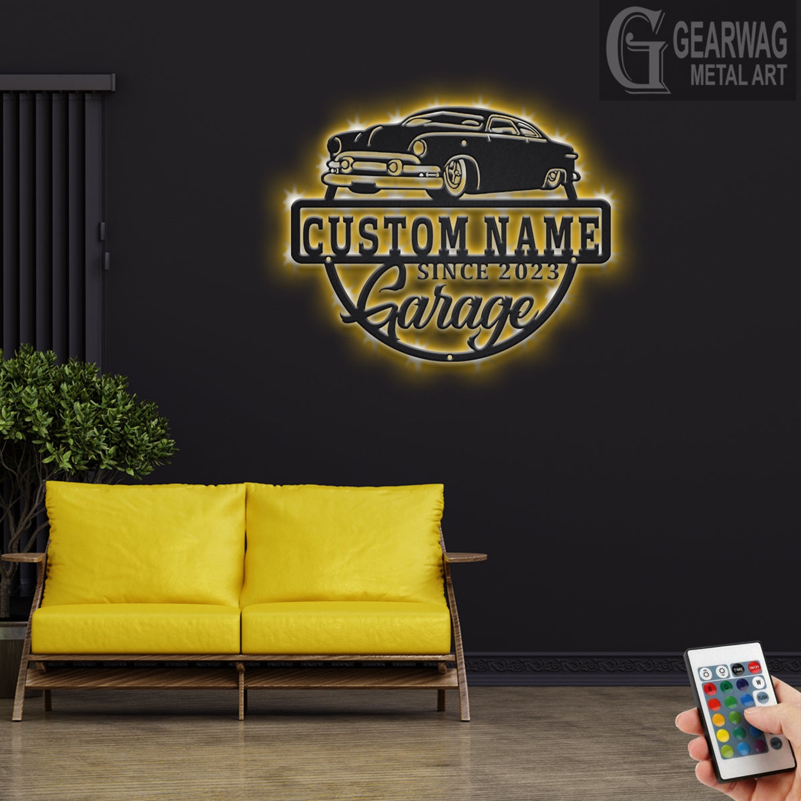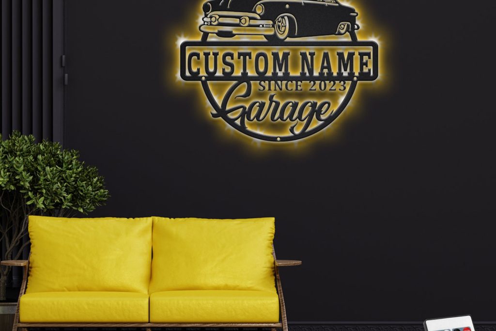 Car Garage Sign – LED Personal Metal Plaque, Man Cave