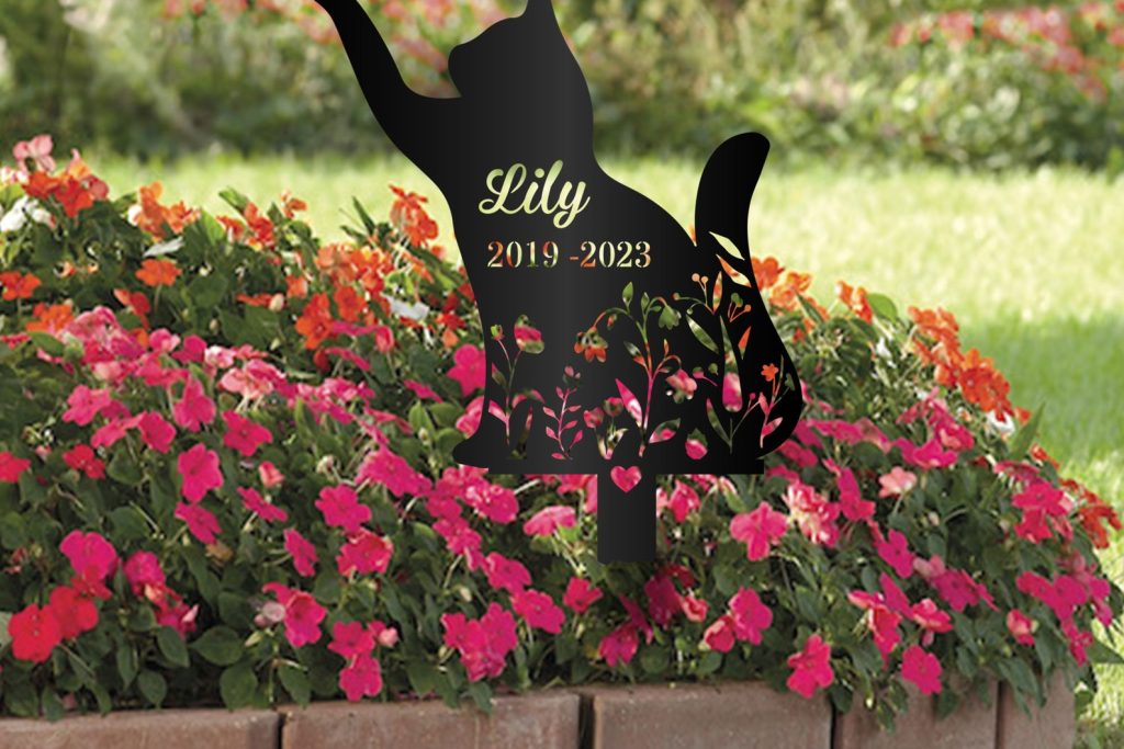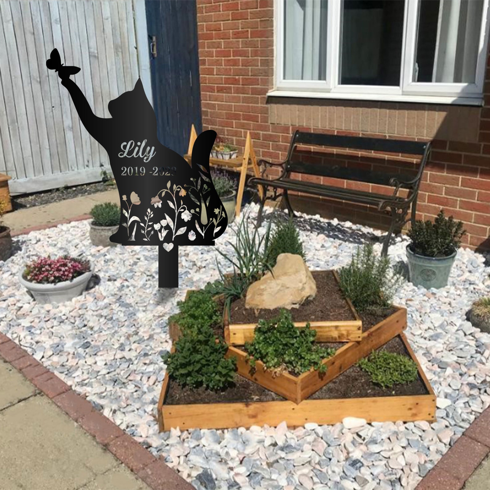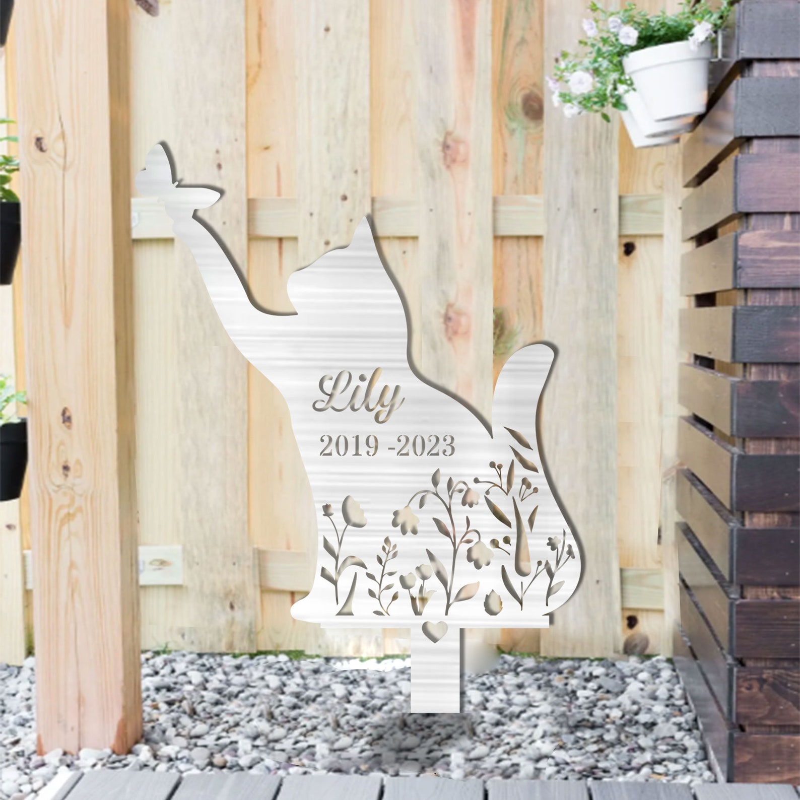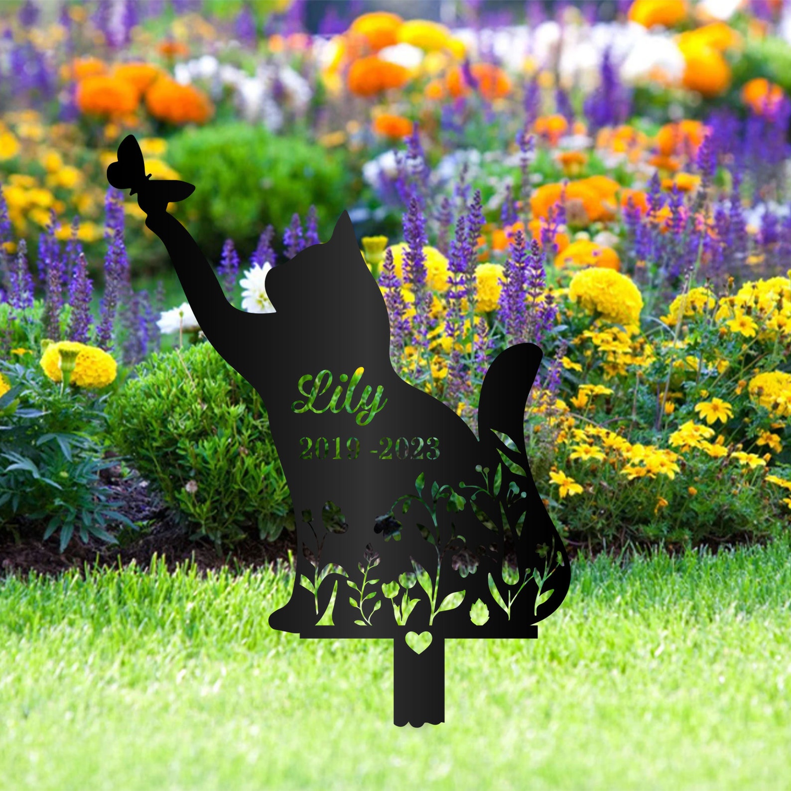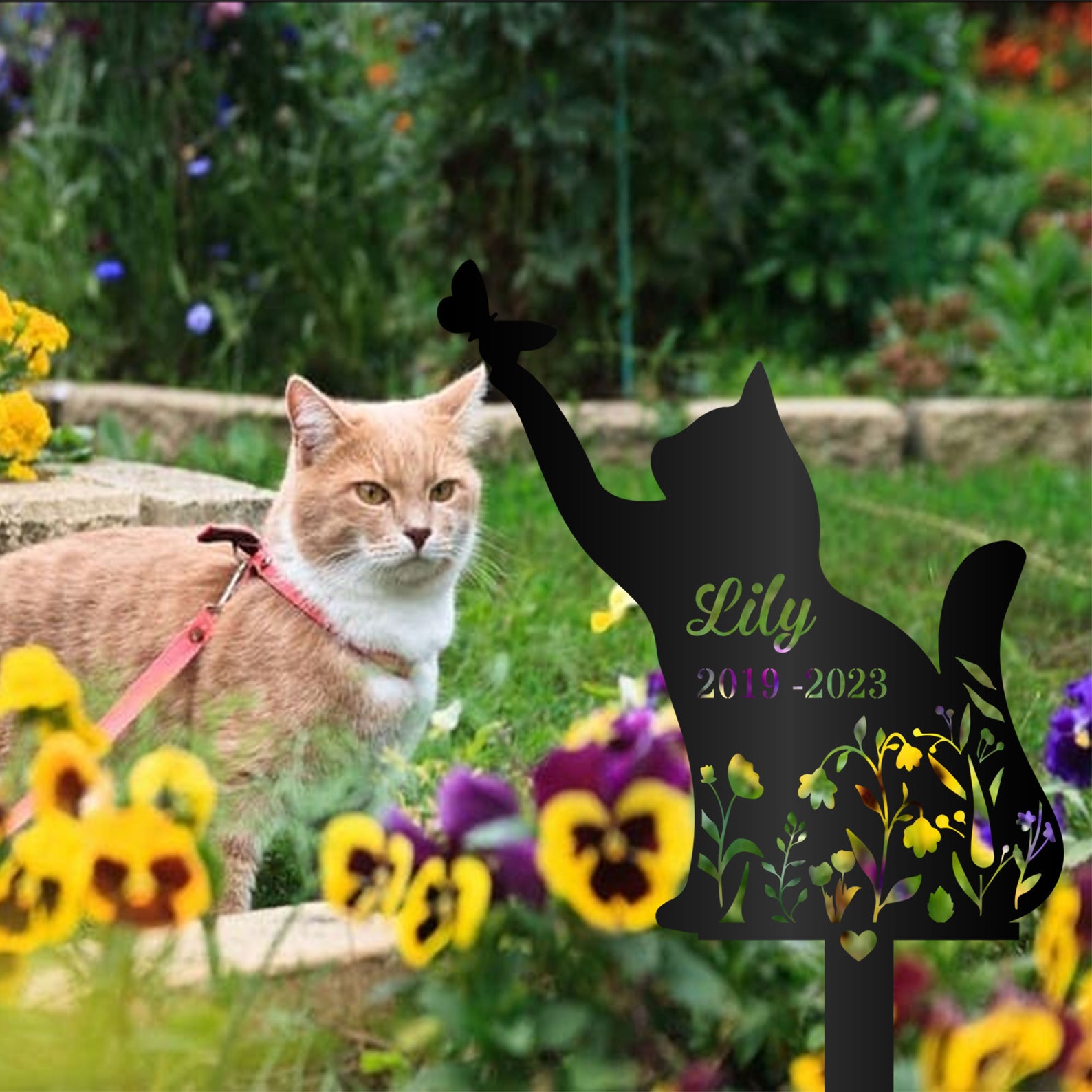 Personalized Cat Memorial Stake,Metal Stake,Cat Loss,Sympathy Sign,Pet Grave Markers,Remembrance Stake,Metal Cat with Butterfly,Flower Cat