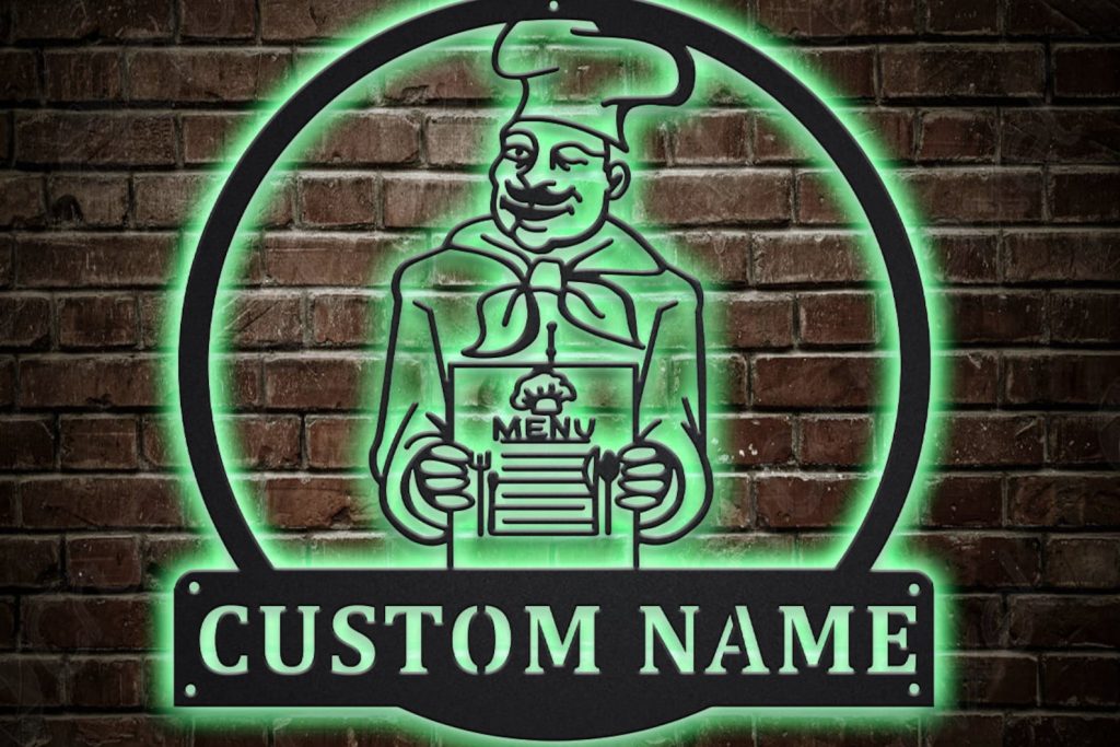 Be the first to review “Chef Kitchen Metal Sign with LED, V4”