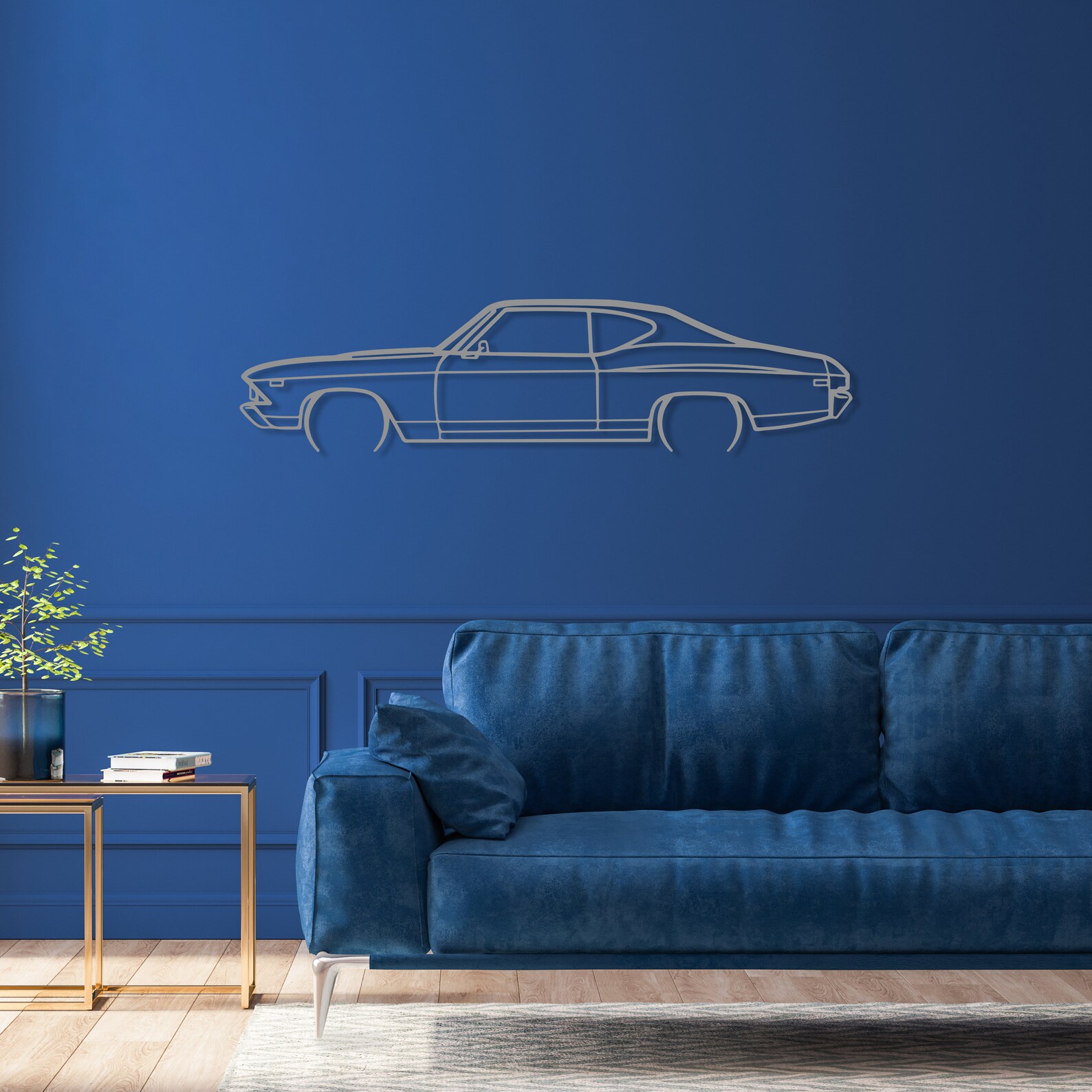 Chevelle SS Metal Car Silhouette, Classic Automotive Decor, Chevelle SS 1969 Garage Sign, Father Gift, Metal Car Line Art, Large Car Art