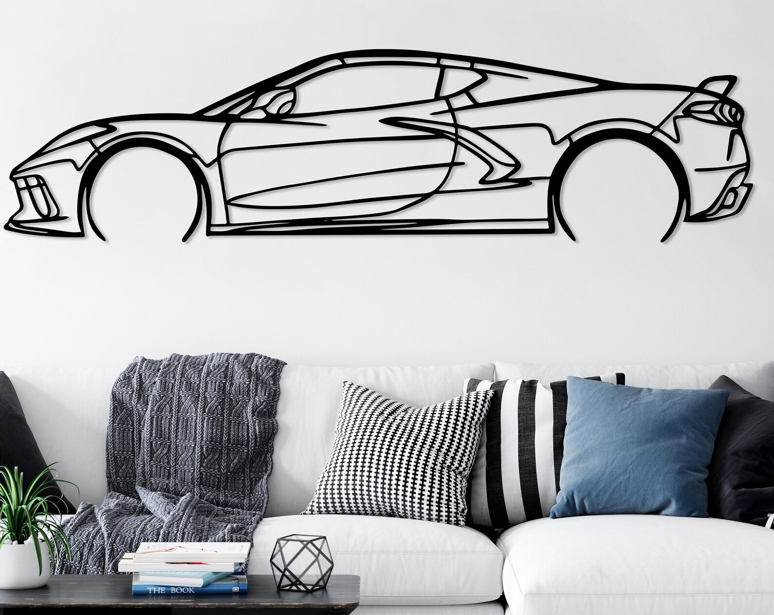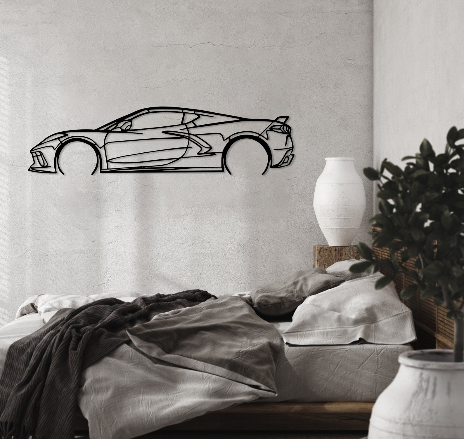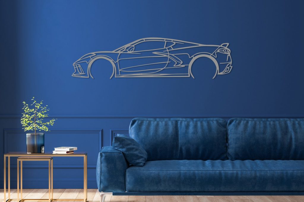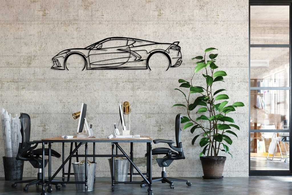 Chevrolet Corvette C8 Metal Car Silhouette, Automotive Wall Decor, Minimalist Car Line Art, Corvette Decor for Garage, Sport Car Wall Sign