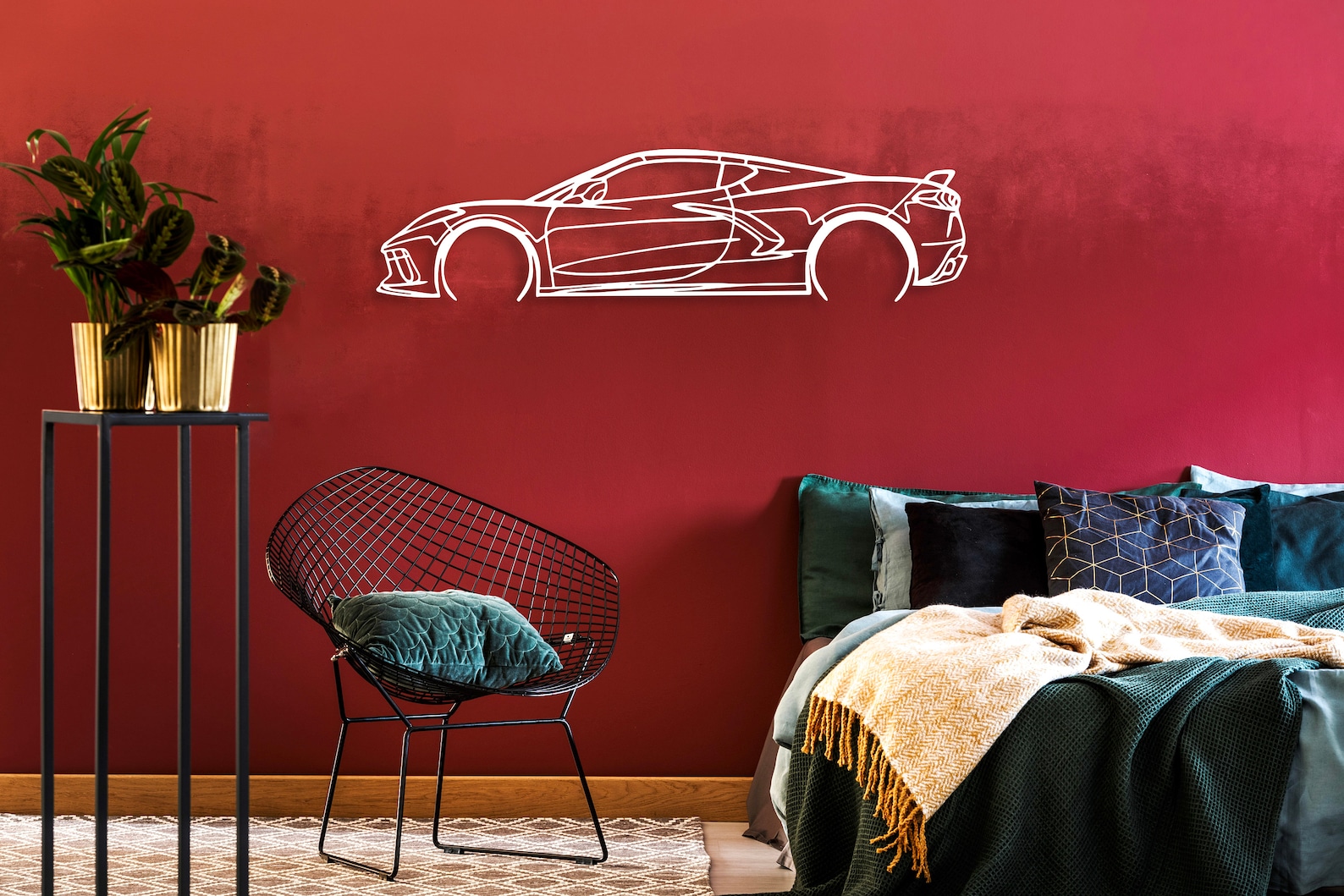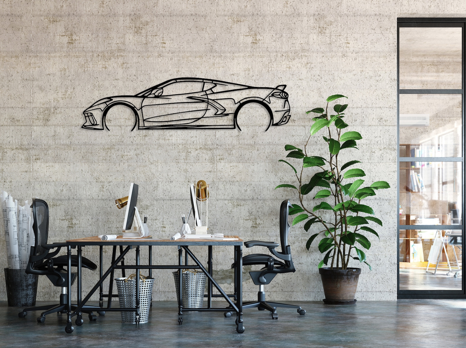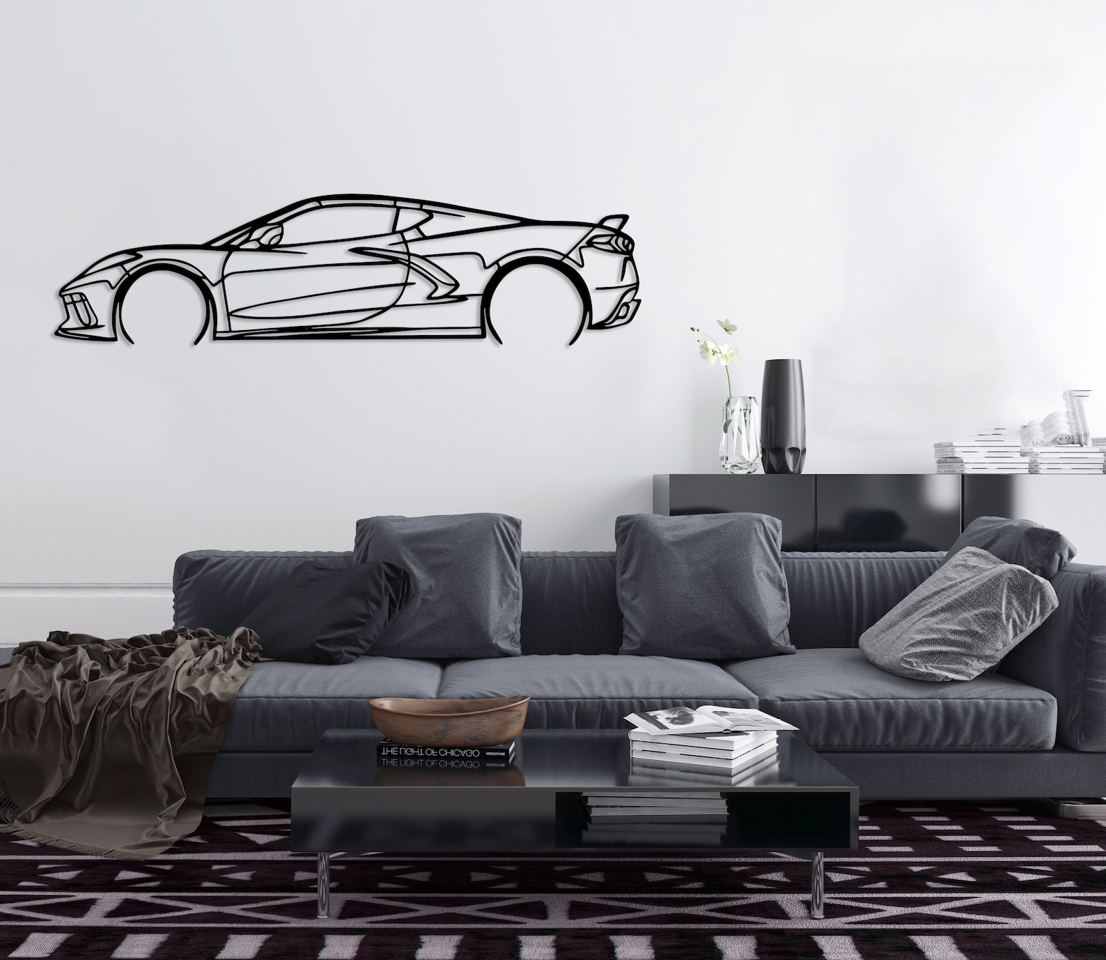 Chevrolet Corvette C8 Metal Car Silhouette, Automotive Wall Decor, Minimalist Car Line Art, Corvette Decor for Garage, Sport Car Wall Sign