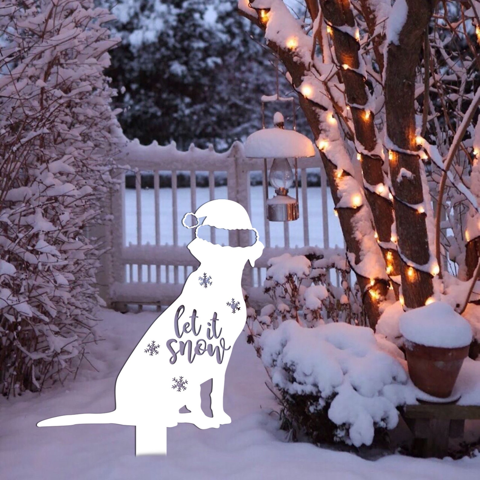 Christmas Dog Sign, Christmas Decor, Labrador Metal Sign, Rusty Metal Stake, Vintage Sign, Holiday Gift, Yard Decoration, Christmas Yard Art, Meaningful Christmas decorations, Christmas gifts, family gifts, Labrador pet lovers, metal signs for animals.