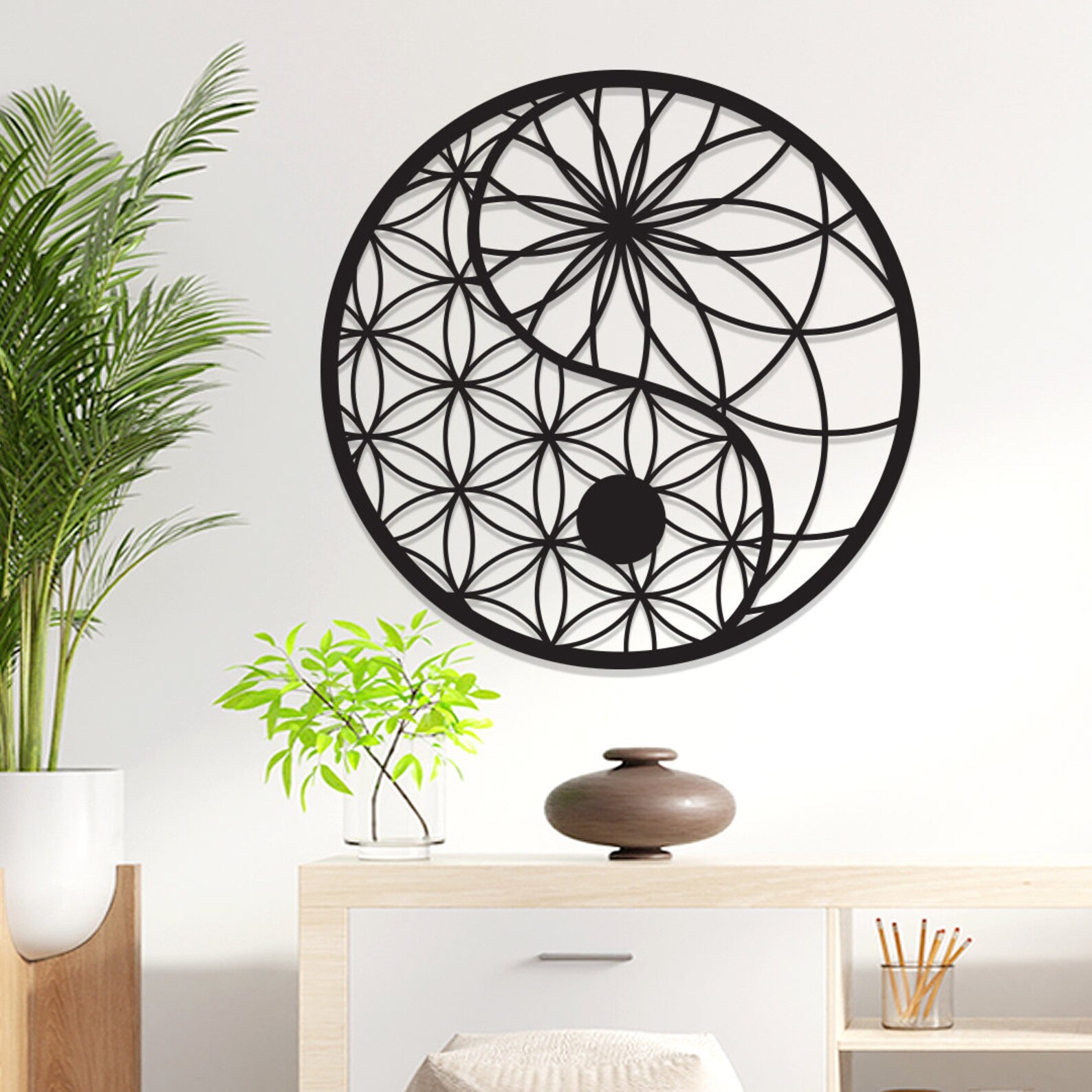 In terms of yin yang meaning, it means two halves that complete the whole together. One of the two halves, yin means dark or shadow, and yang means light or sun. It is also evaluated as good and bad, negative and positive. In fact, you encounter yin yang every day in your life. For example, night and day, men and women. Yin and yang are also the starting point for change. When something is whole, it is by definition immutable and complete. In other words, when this is divided into two, the balance of the whole is disturbed and both wholes seek a new balance by running after each other. Two things that are completely opposite to each other lose their meaning without each other. You can give your home a far eastern feel with this meaningful metal wall art. You can also beautify your wall with the charm of metal. It is a great housewarming gift.