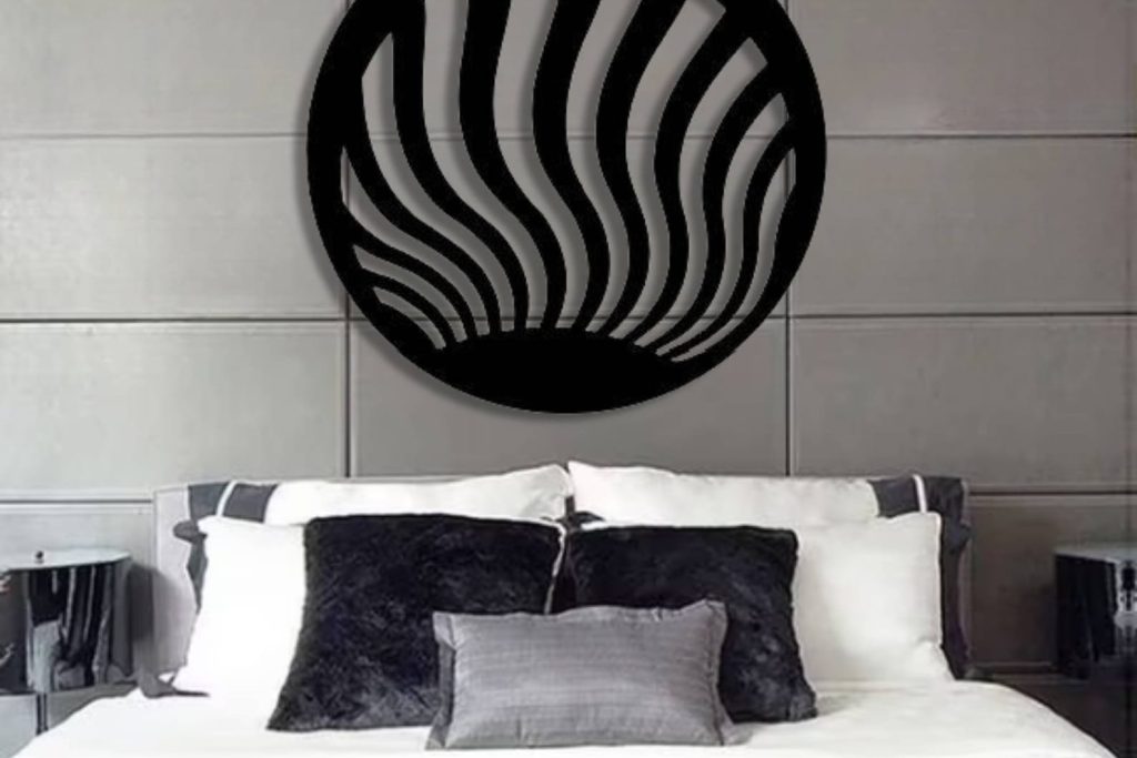 This metal wall hanging is designed for your modern home decorating. As distinctive point from other metal wall signs our 2d dimension looking metal wall decors are unique home decor products.As the metal wall art stands 2 cm away from the wall you hang on,you will have natural sunshine or lighting passing through.