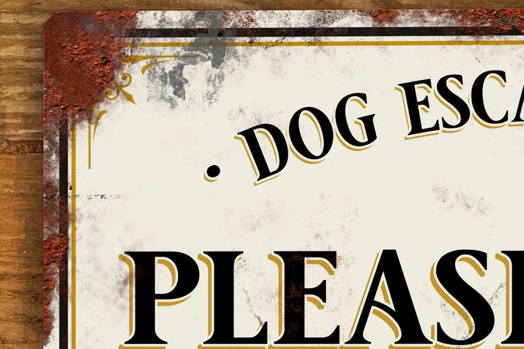 This Vintage style metal Close the Gate sign is a great addition to any Outside Garden Gate, Wall or fence to encourage to keep your pet Dog safe. Designed in Retro Classic Style, the sign is made from aluminium metal and is printed using dye sublimation inks which makes it completely waterproof. The design has been designed with the rust effect as seen. This is not real rust. It is an effect created within the artwork.