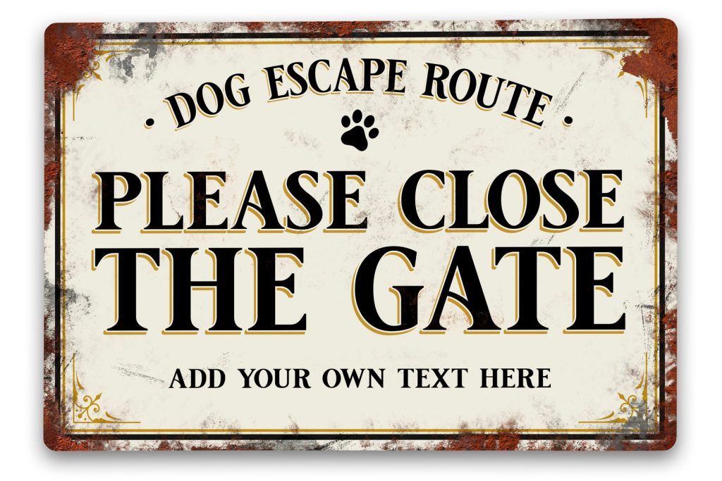 Personalised Close the Gate Sign Dog Warning Metal Wall Door Fence Decor Garden Accessory, Vintage Retro Waterproof Aluminium, 200mm x 305mm