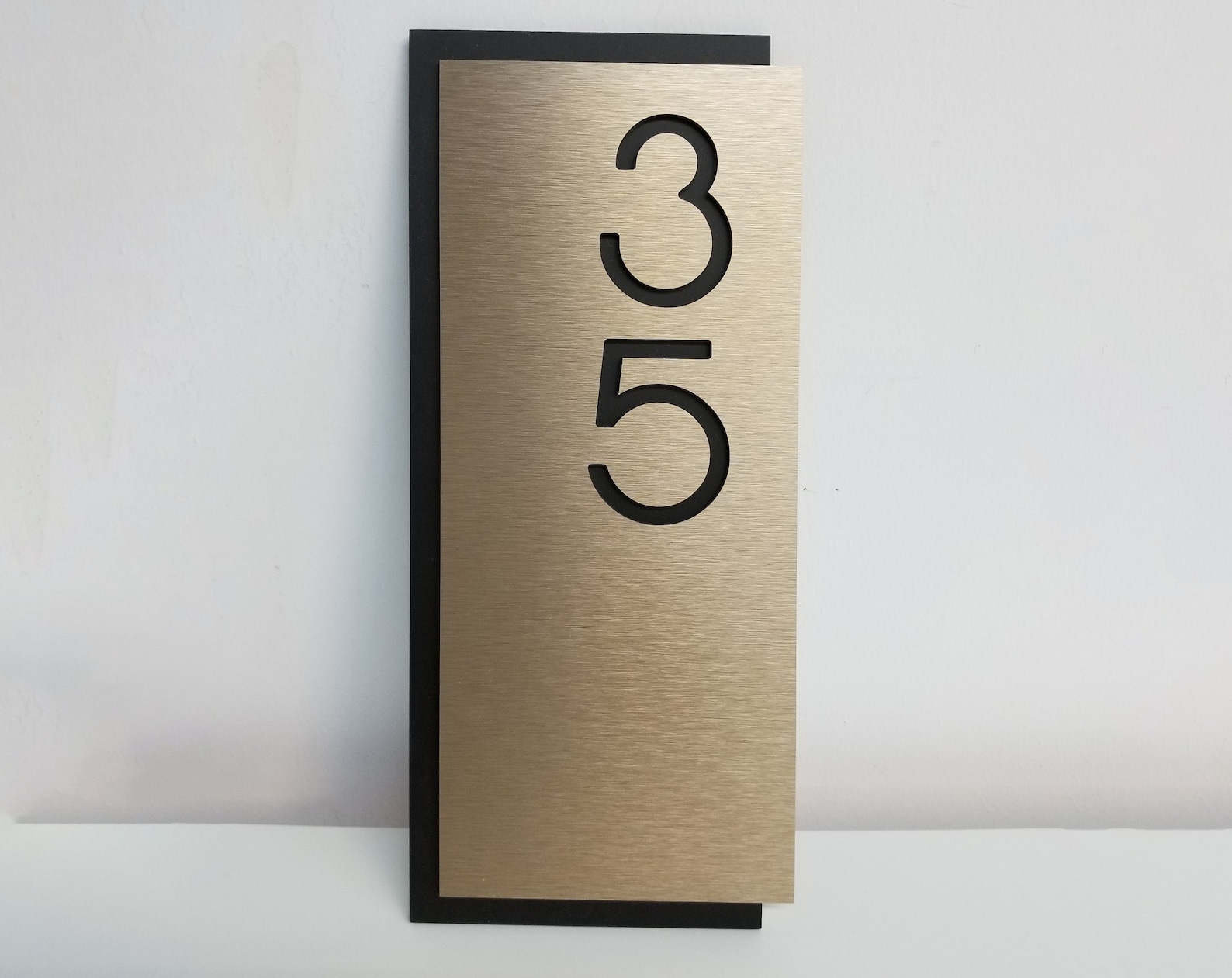 Make a striking statement with our Sleek Modern Metal House Number with Addressan elegant fusion of form and function. Crafted with precision and care, this address plaque not only adds a touch of contemporary sophistication to your home but also ensures that your address is easily identifiable.