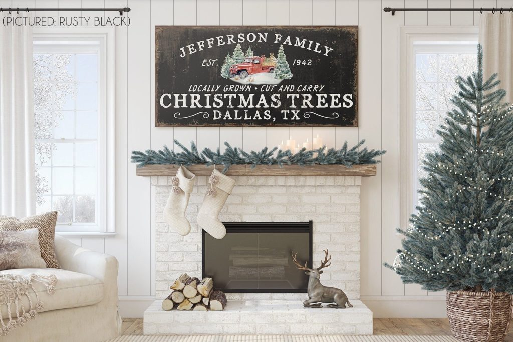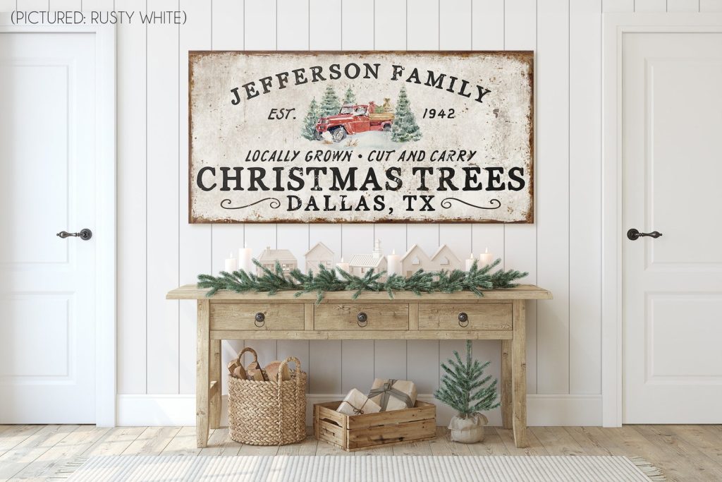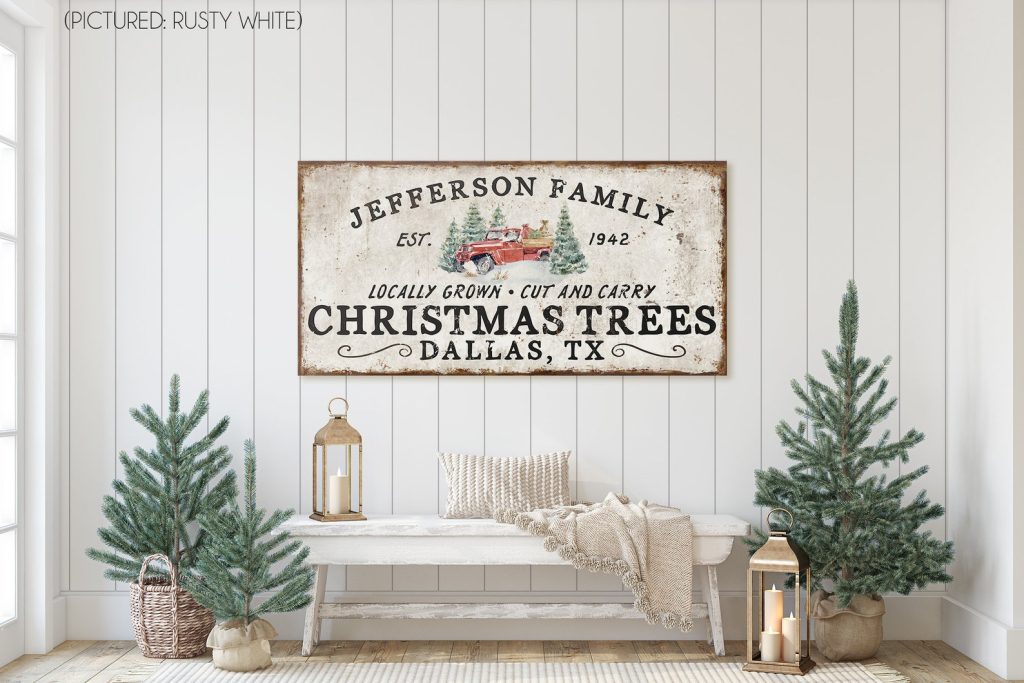 Personalized FamilytChristmas Tree FarmtSigns for FronttPorch Front DoortHoliday Decor CustomtFarmhouse ChristmastRed Truck Wall ArttRustic Christmastold rusty Decortvintage chippytold antiquetfamily name signtmetal canvas wood