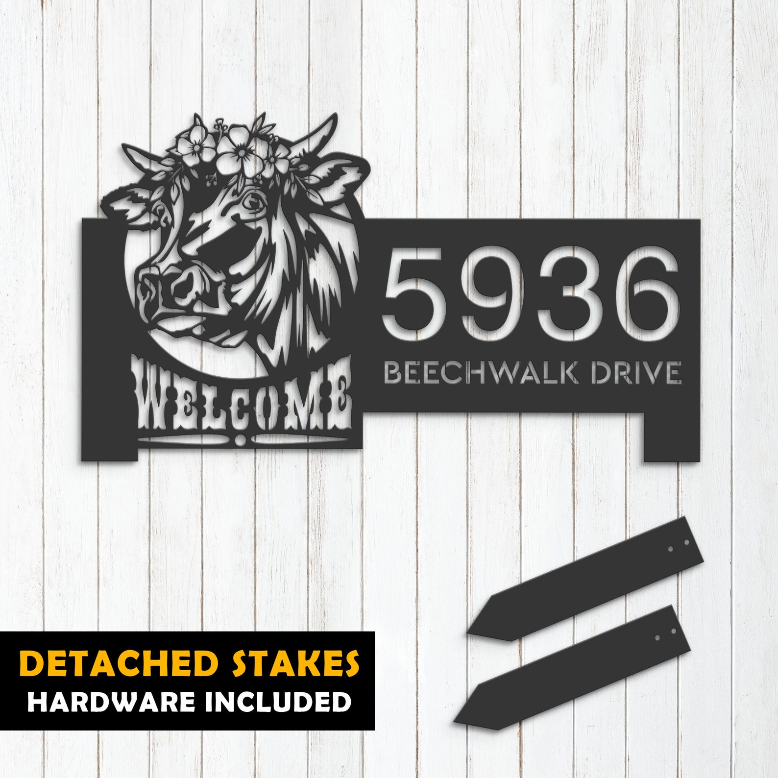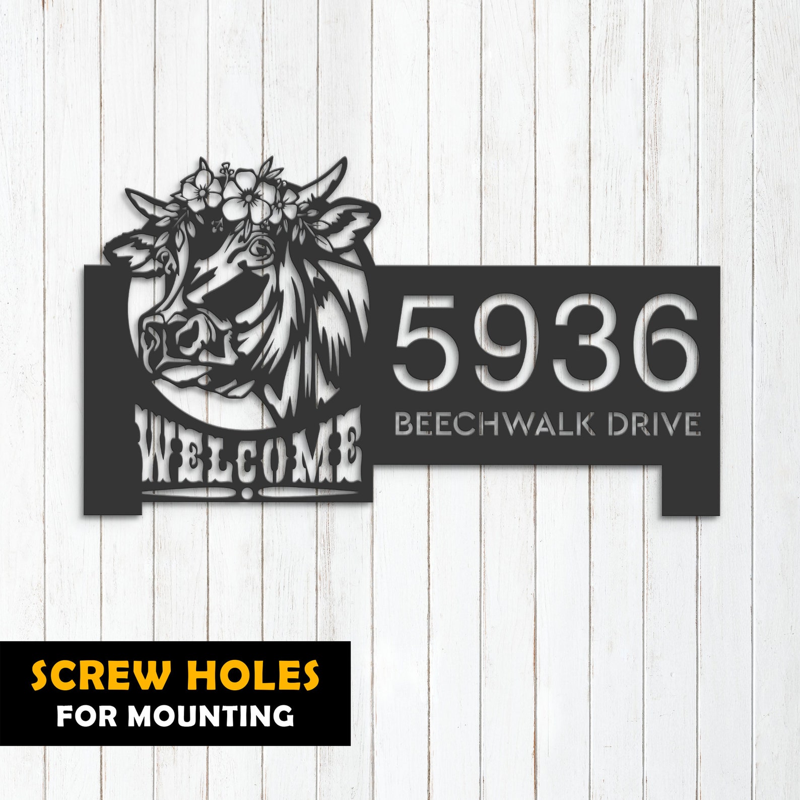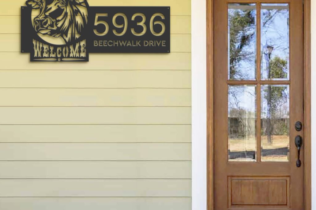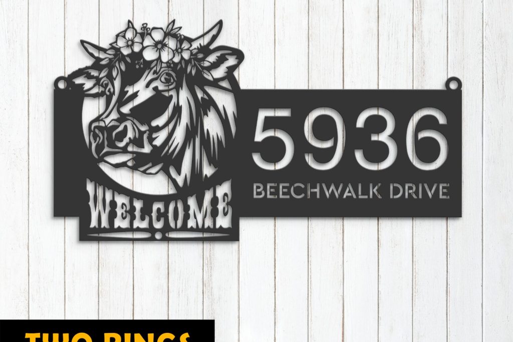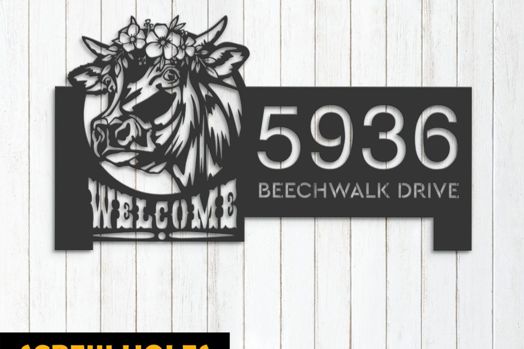 Cow Farm Welcome Metal Address Sign for Yard