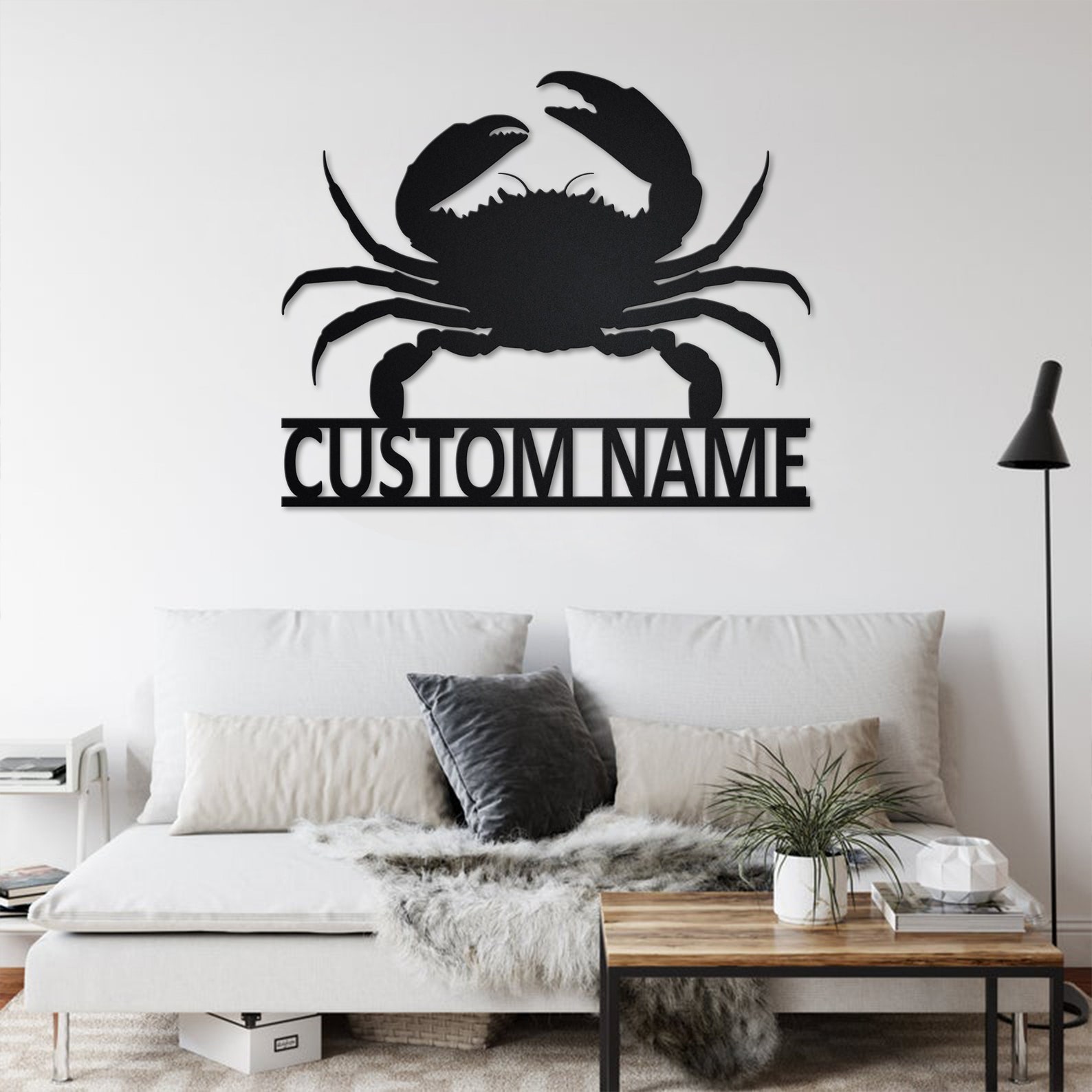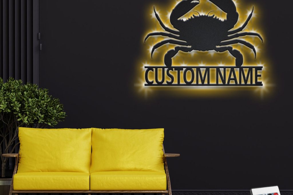 Crab Metal Wall Art with LED – Personalized Name Sign