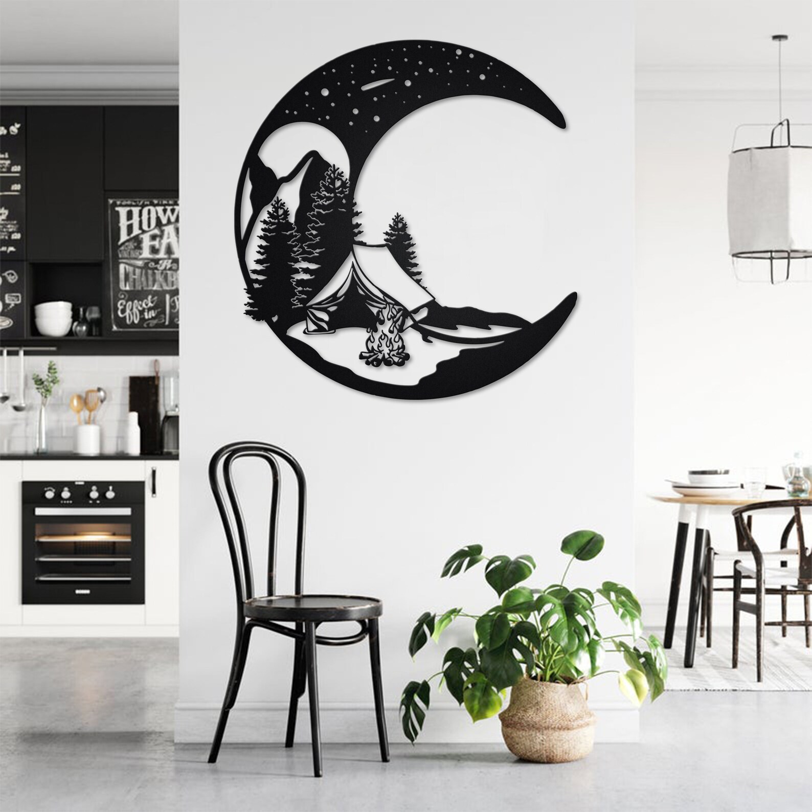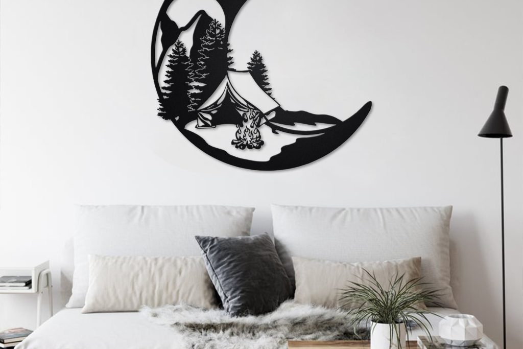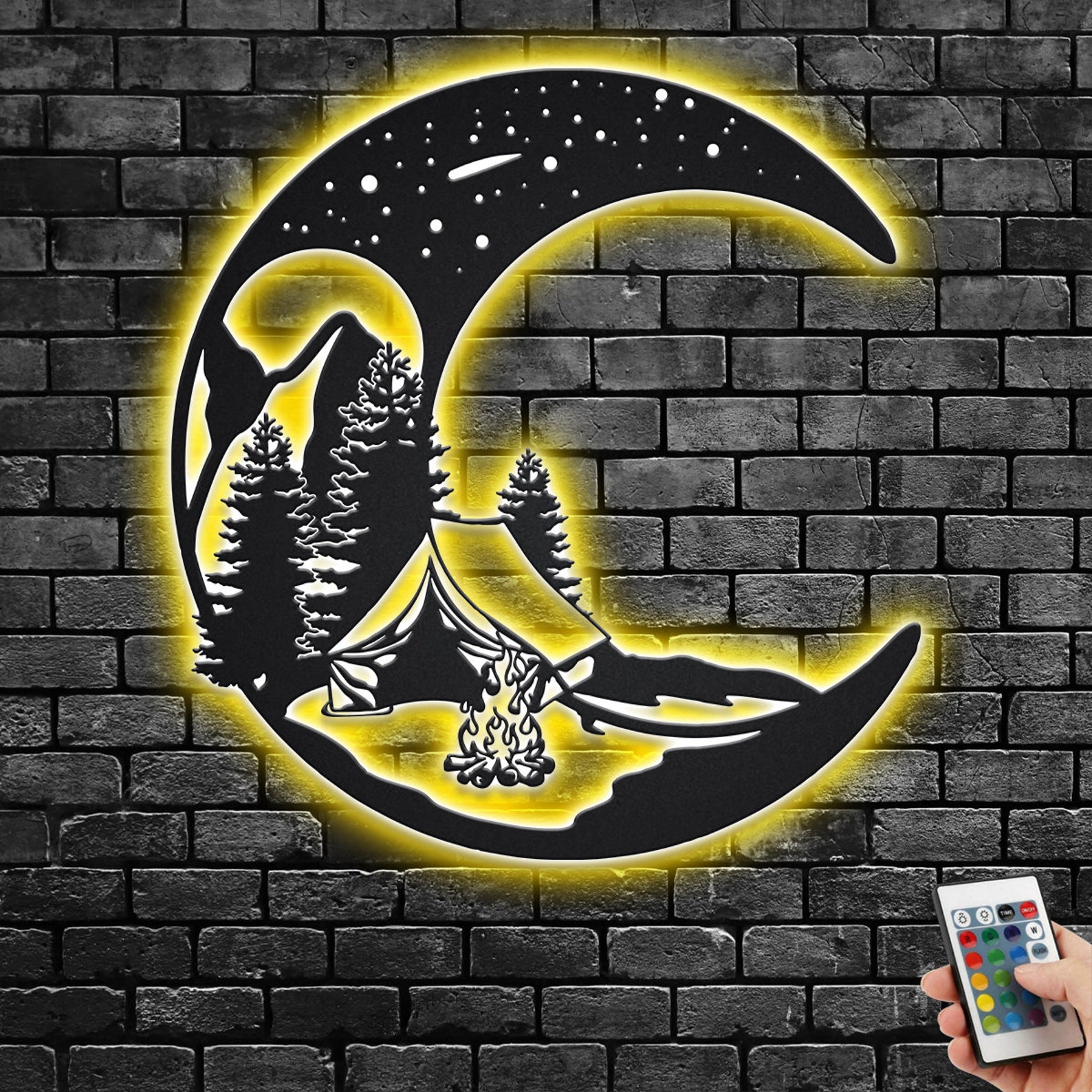 Crescent Moon Camping Art – LED Light, Personalized