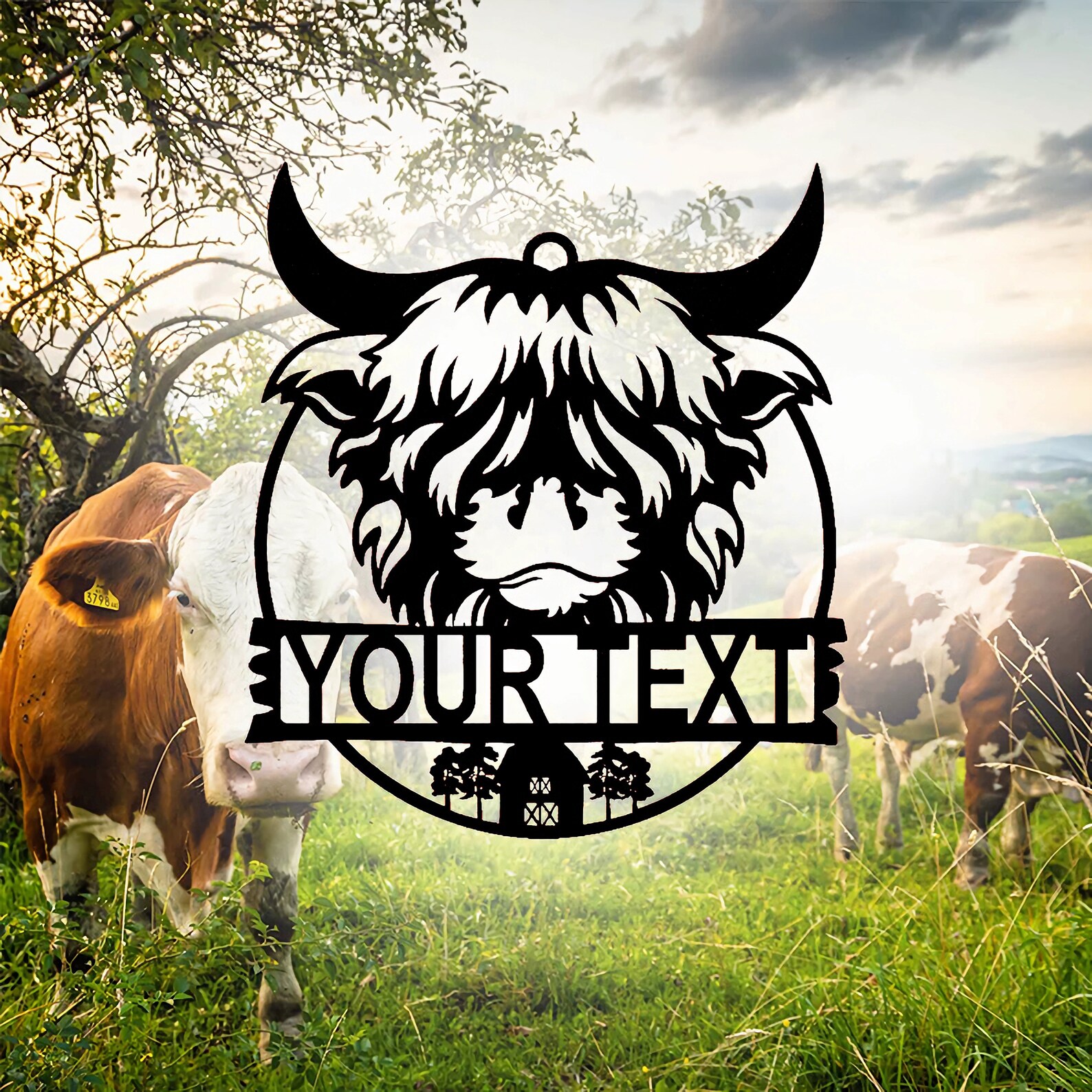 Custom 3ft Cow Metal Sign – Personalized Farm Name