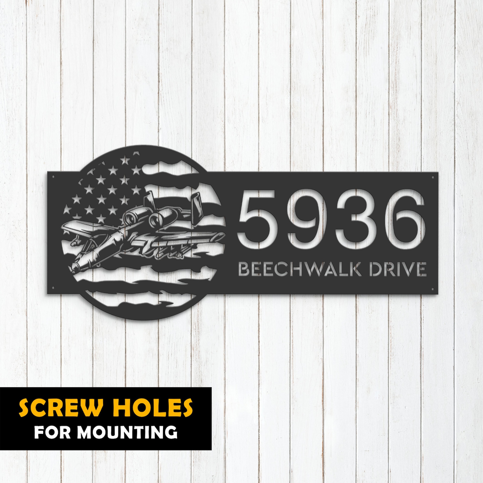 Be the first to review “Custom A-10 Airplane with US Flag Metal Address Sign”