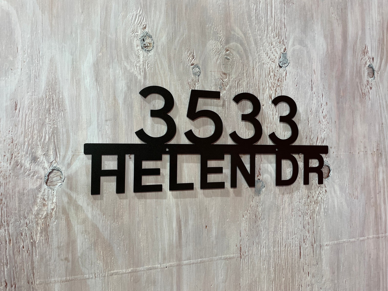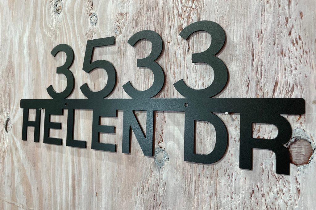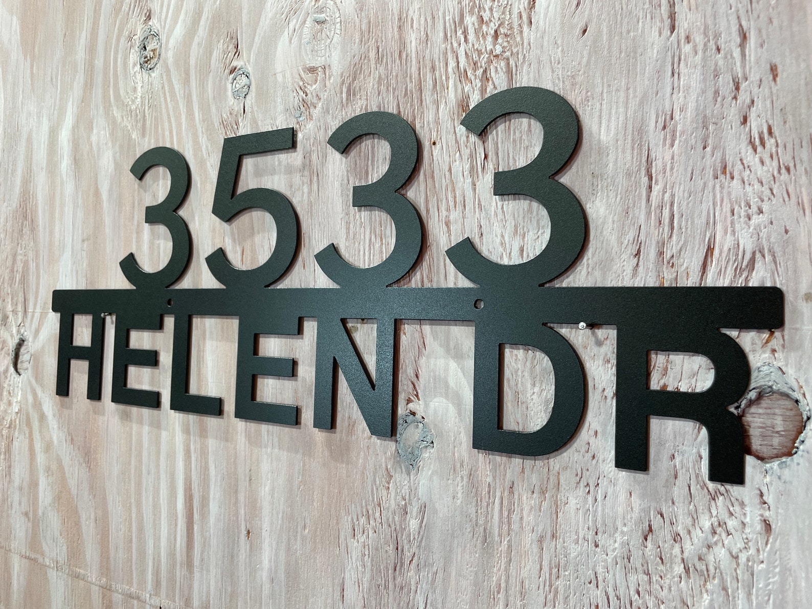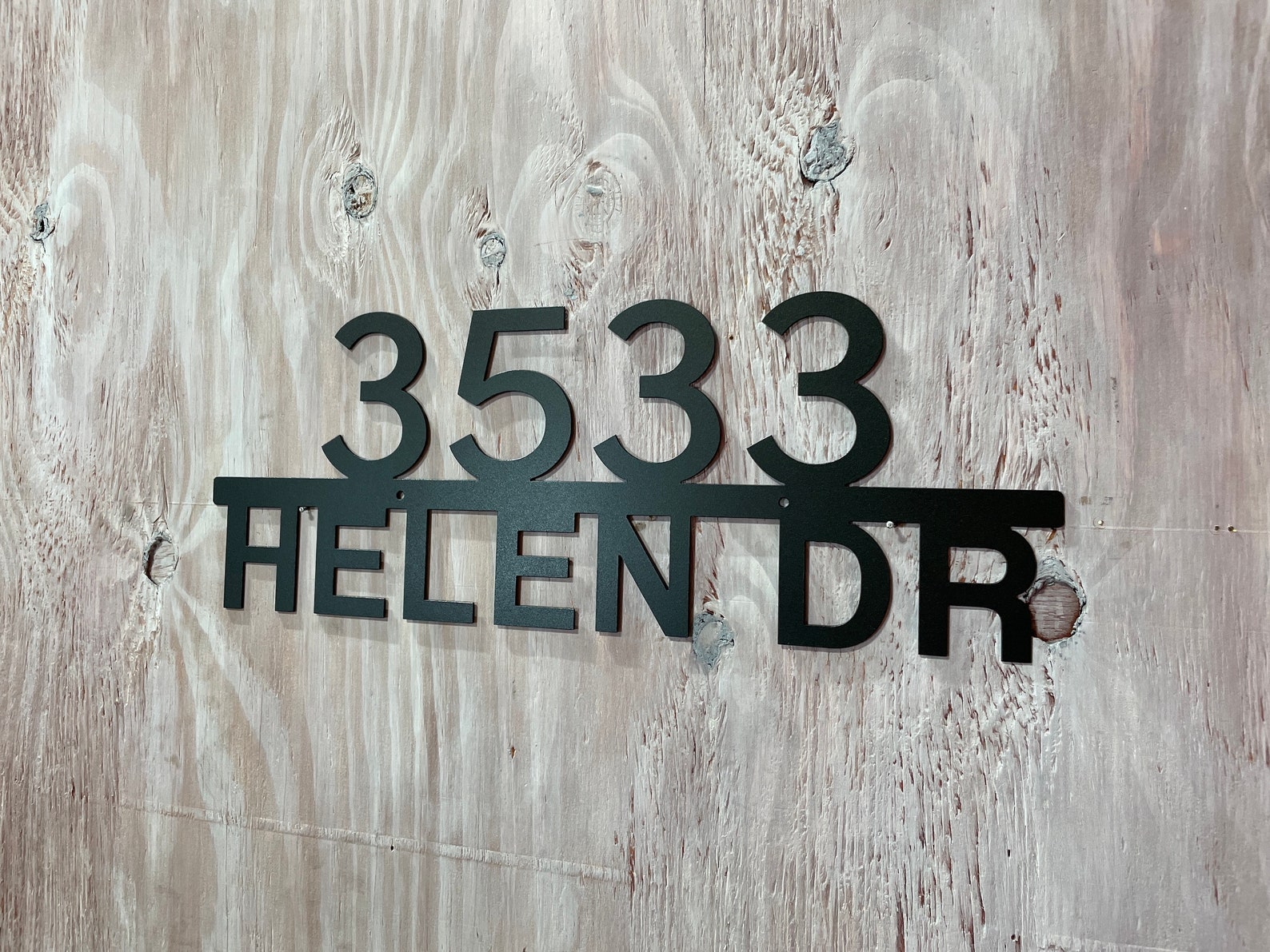 This personalized metal sign is a perfect addition to your home! We use your last name and address number to produce this unique and fun, plasma-cut sign. This product is great to hang near your front entrance, inside your home, on your door or patio, and in many more places. This is a great gift for family and friends and makes a perfect housewarming gift!