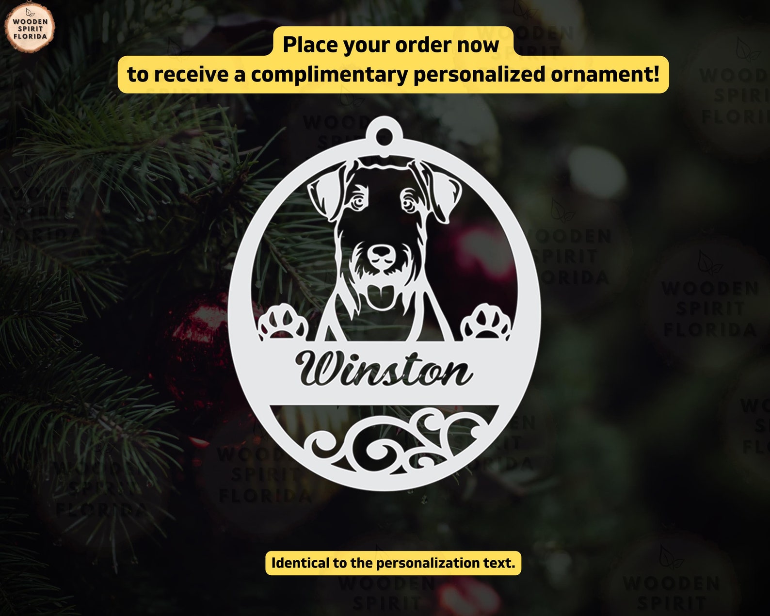 Complement your purchase with a FREE ornament, tailored to match the personalized text of your order.